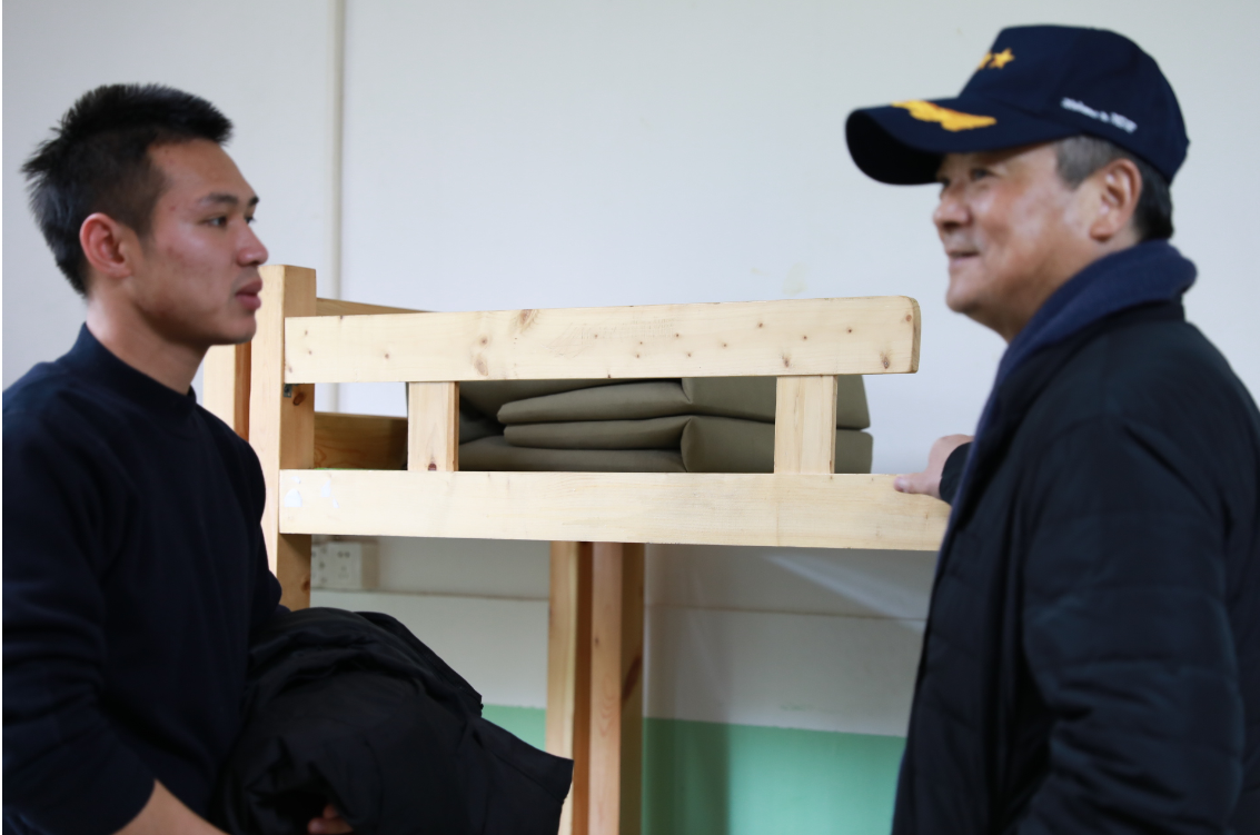 接著,老領導一行參觀了公司訓練基地。隨后,走進員工宿舍,與員工親切交談,了解他們的生活、工作情況。當來到文體室,看到一面面錦旗,一封封感謝信,掛滿榮譽墻時,駐足細看,紛紛豎指稱贊。