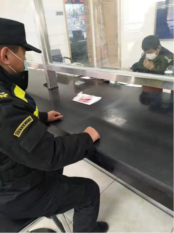 1個多小時過去了,仍然沒有失主前來尋找。李軍就來到派出所,將現(xiàn)金上交給民警,登記說明后回到崗位繼續(xù)工作。考慮到失主丟失現(xiàn)金的急切心情,班組長告知周邊商戶,如果有群眾尋找可到楊思派出所認(rèn)領(lǐng)。