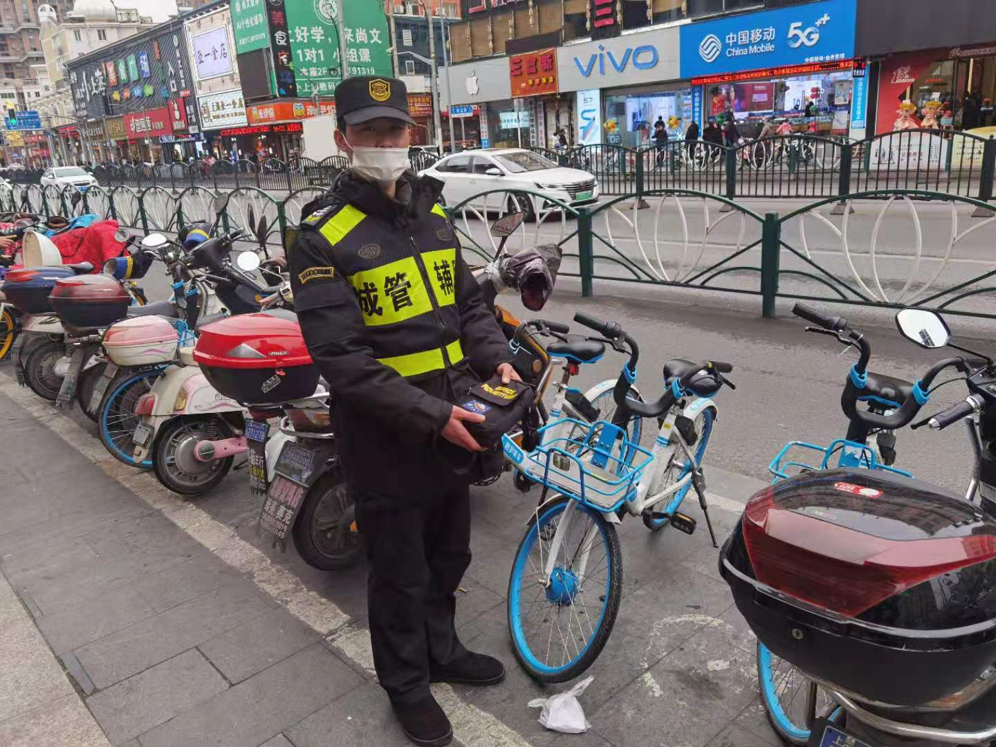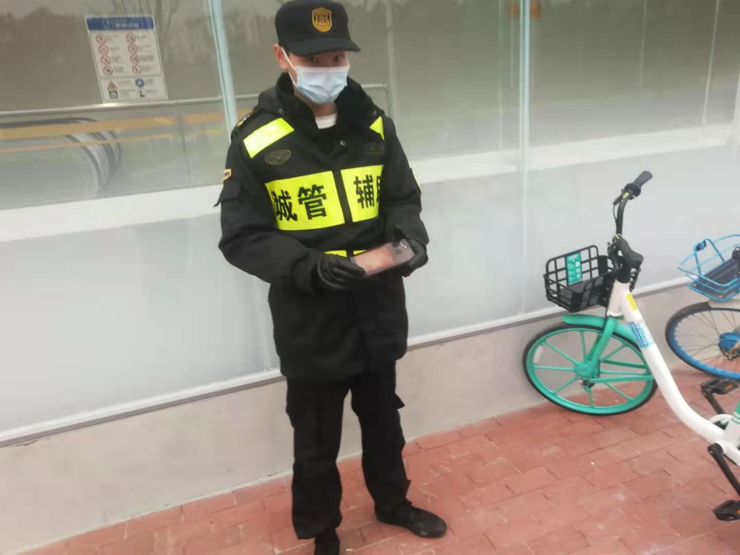 當(dāng)日14:40,楊紀(jì)龍巡邏到步行街路口時,發(fā)現(xiàn)在路邊共享單車籃內(nèi)有一個黑色包,無人認(rèn)領(lǐng),便立即上報班組長,并按指示在原地等候。
