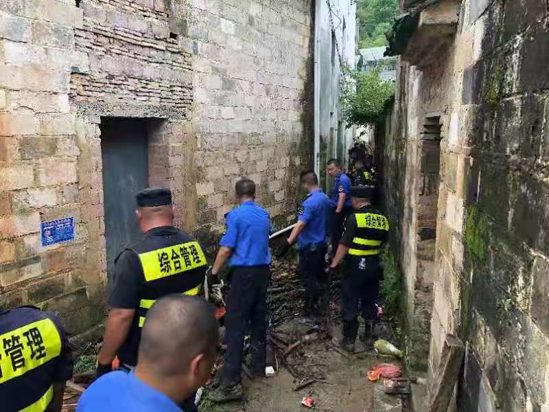 去年7月份,休寧縣遭遇特大洪水,宗保隊(duì)員勇?lián)?dāng)、善作為,積極配合縣城管局進(jìn)行抗洪救援搶險(xiǎn),對(duì)積水道路、塌方路段樹(shù)拉警戒線,勸離過(guò)往車輛和群眾;清理雨污水井、雨蓖,清掃路面垃圾,清除路面障礙雜物,確保排水下水口和道路通暢;全面排查隱患區(qū)域、塌方路段、沿線河道,全力保護(hù)人民生命和財(cái)產(chǎn)安全。
