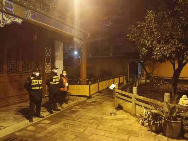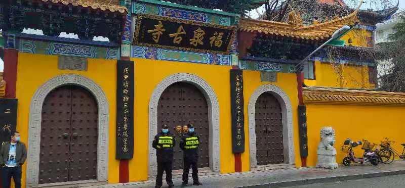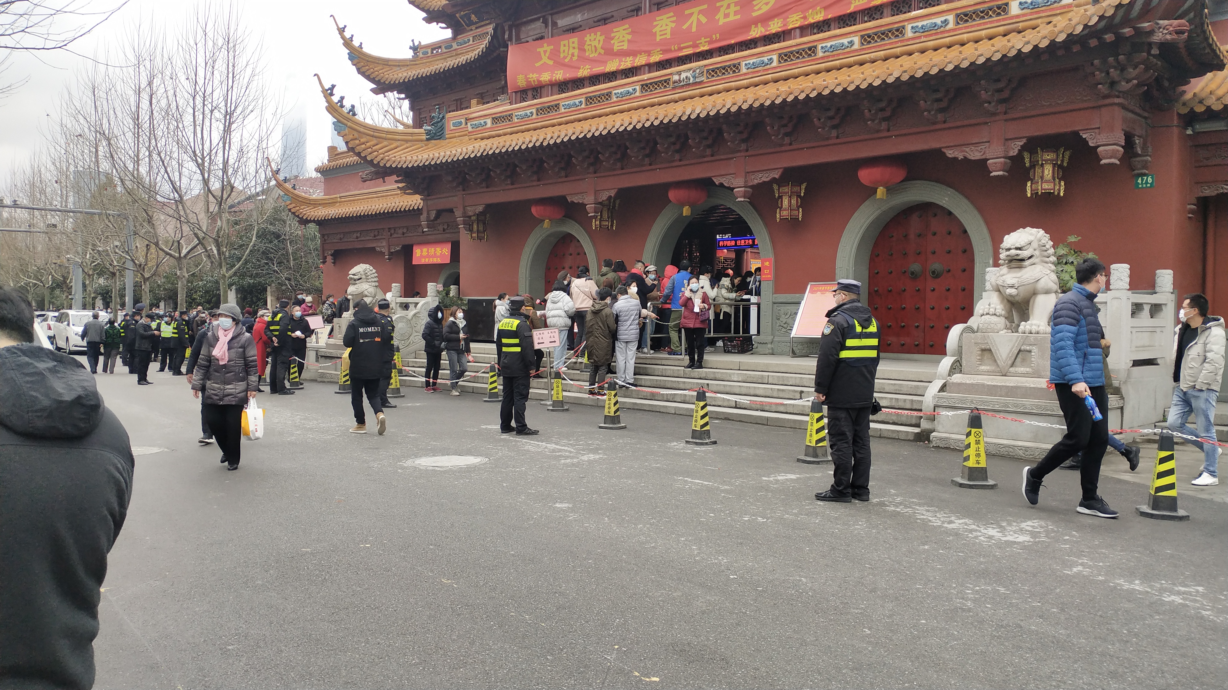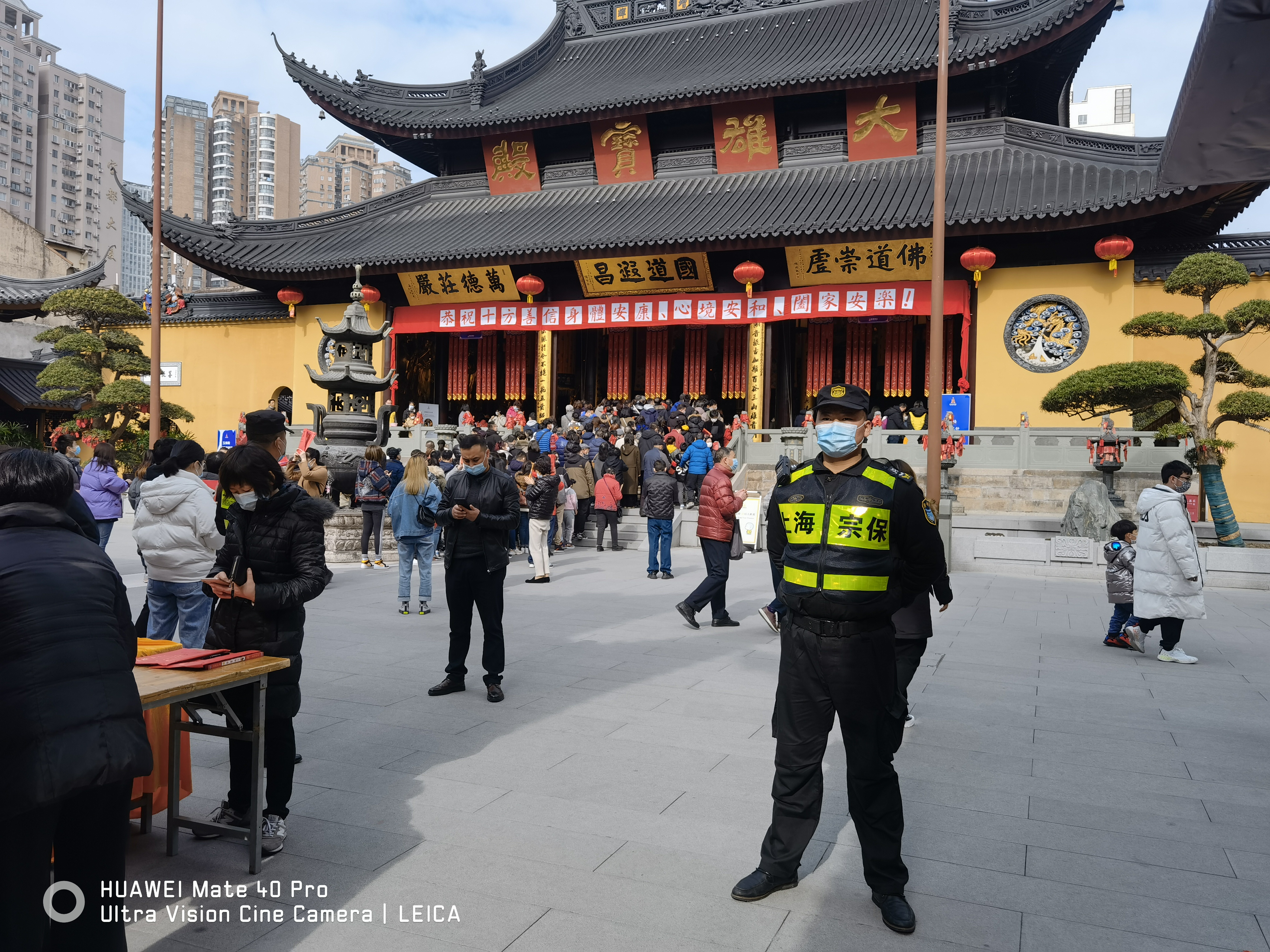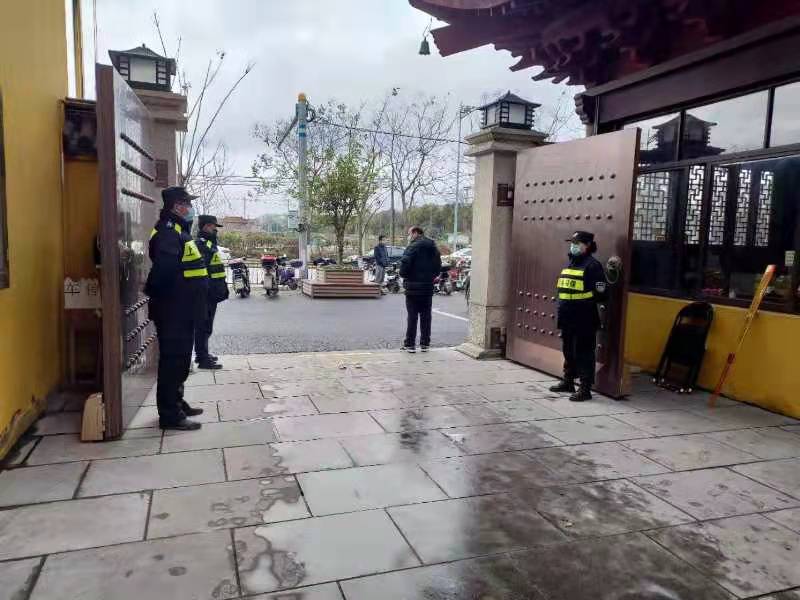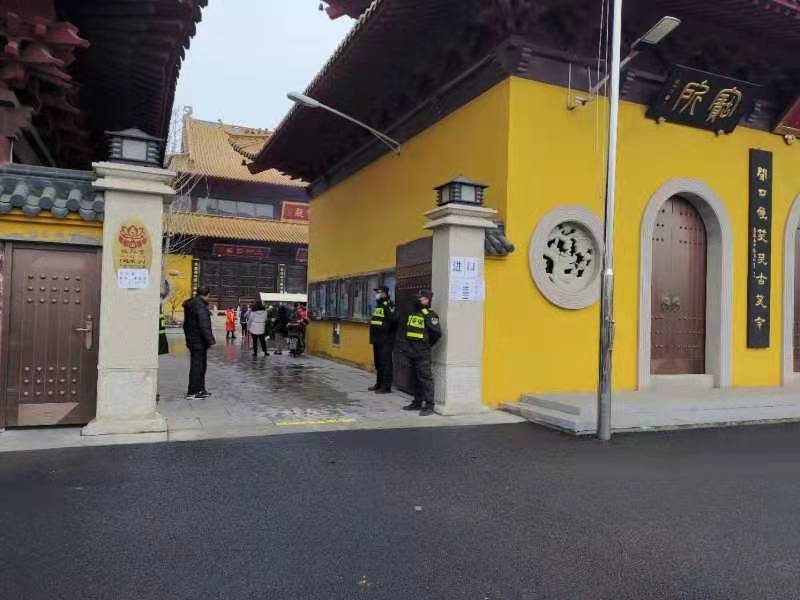 春節(jié)期間,眾多市民群眾到名寺古剎燒香祈福。為確保寺廟祈福活動場所安全有序,除夕當(dāng)天,宗保公司在公安民警和甲方領(lǐng)導(dǎo)的指導(dǎo)下,派出精干隊員全力參與上海、杭州兩地18座寺廟的秩序維護(hù)保障工作。