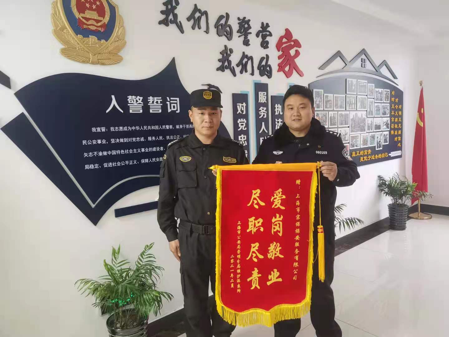 3月1日,宗保公司駐崇明橫沙東灘項(xiàng)目收到橫沙派出所副所長陳季杰送來的一面繡有“愛崗敬業(yè) 盡職盡職”的錦旗,贊揚(yáng)愛崗敬業(yè)的宗保隊(duì)員們。