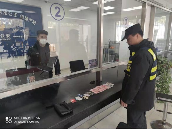 隨后,杜祖峰隨組長將手提袋送到派出所,在民警的監(jiān)督下清點(diǎn)物品,袋內(nèi)有現(xiàn)金841元、身份證、銀行卡、社保卡等證件,兩人將手提袋上交民警后,便悄然離開。