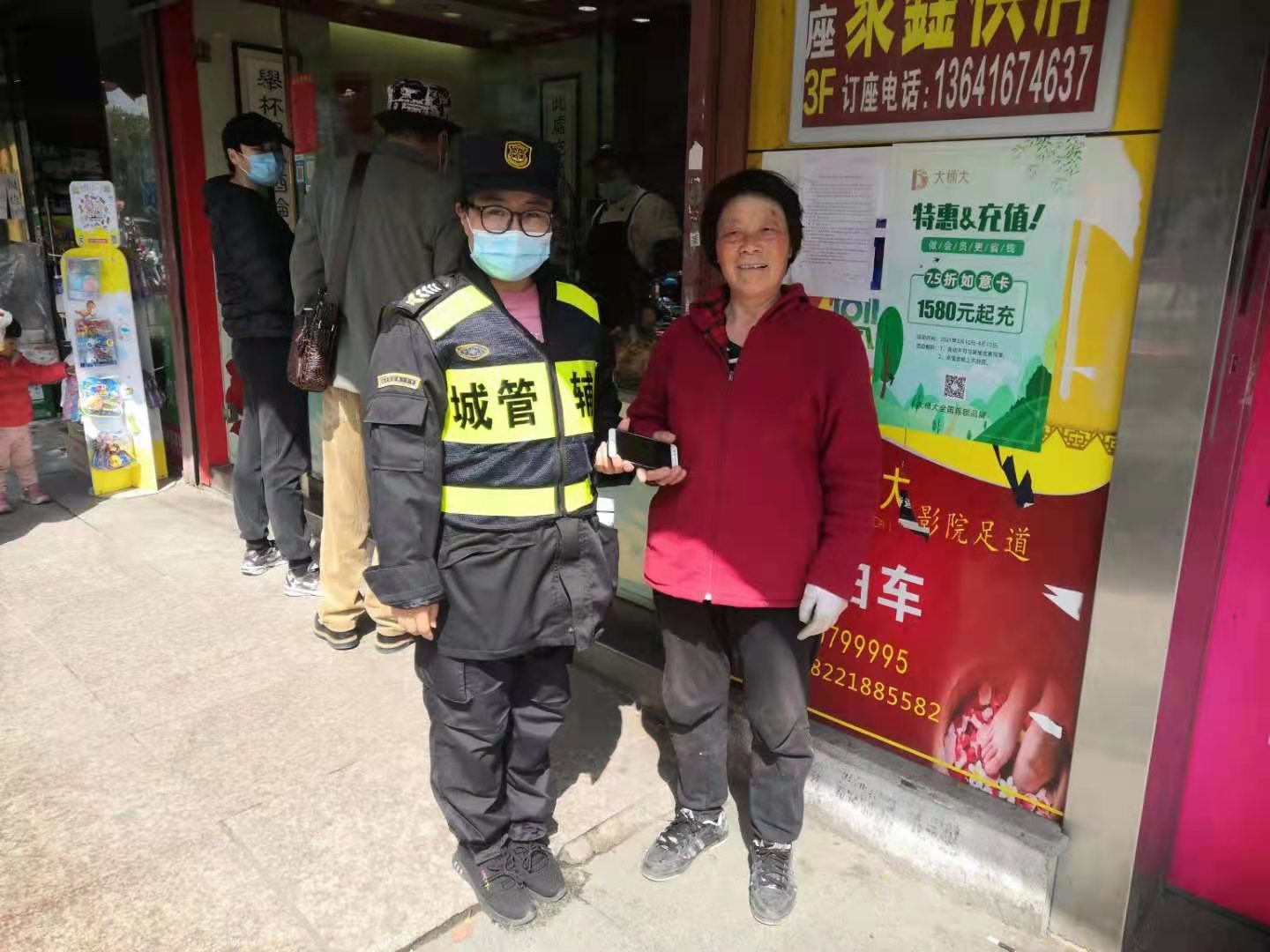10:10左右,一位阿姨匆匆趕到現(xiàn)場(chǎng),經(jīng)核對(duì)確認(rèn)是失主后,趙娟將手機(jī)歸還給阿姨,阿姨再三向趙娟表示感謝!