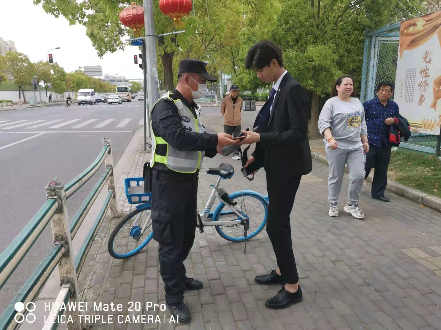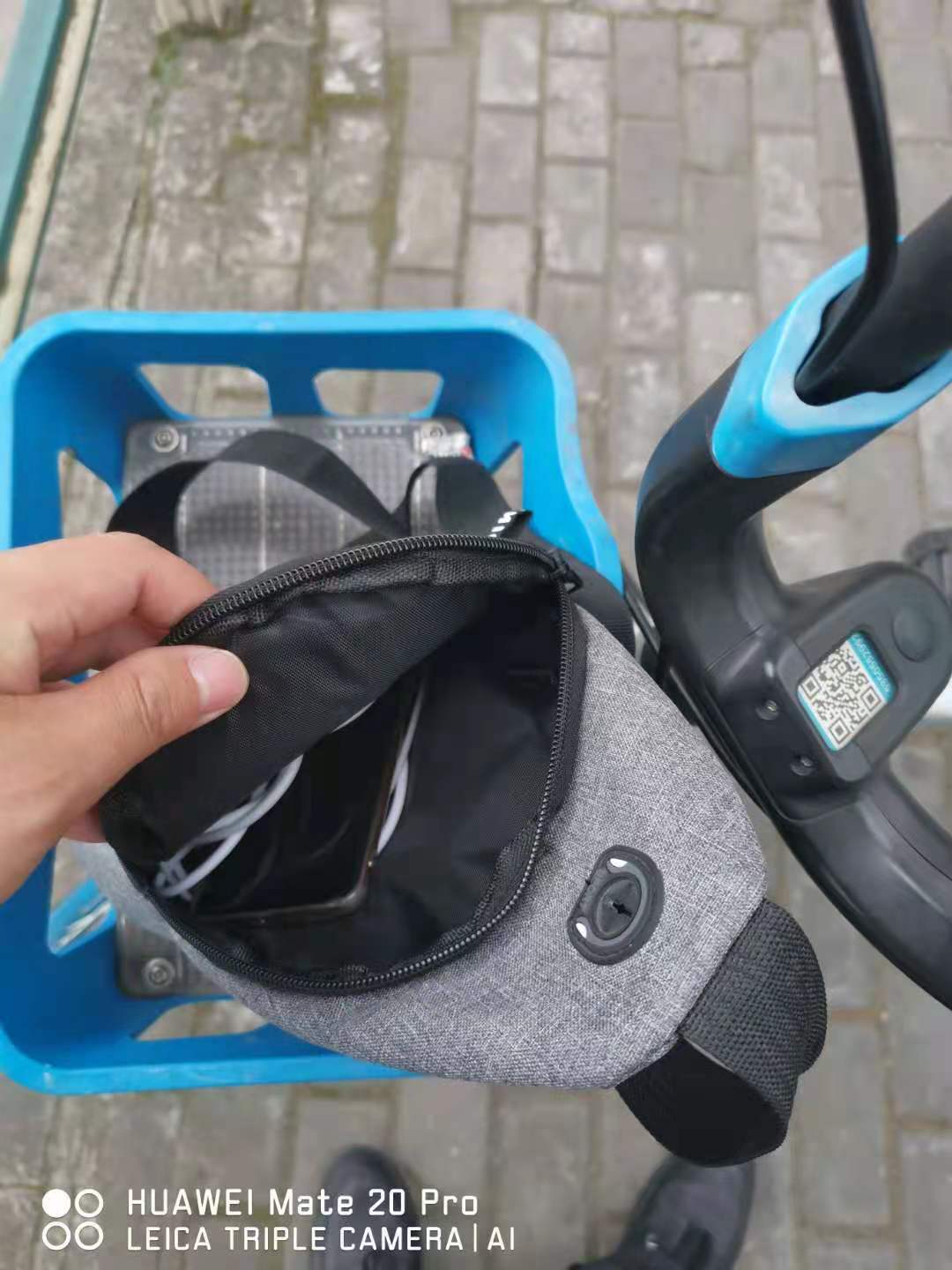 當天12:10, 徐建在沈梅東路163號社區(qū)衛(wèi)生服務(wù)中心值勤時,發(fā)現(xiàn)在路口的共享單車車筐里有一個斜挎包無人認領(lǐng),包內(nèi)有一部新手機、充電器和耳機等物品。因擔心斜挎包被非失主拿走,在無法聯(lián)系失主、又考慮到失主可能會回來尋找的情況下,徐建便在原地等待。