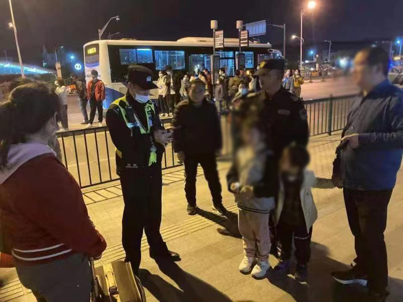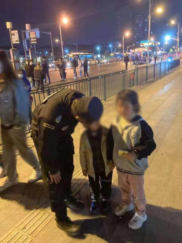 當(dāng)天19:20,魏志奇、李自飛、劉貴連三人在惠南地鐵站周邊巡邏時,看見兩個小朋友在哭泣,身邊沒有大人陪同。見此情景,三人隨即上前詢問,得知小孩的父母親吵架鬧矛盾,相互斗氣,誰也不管,將兩個小孩丟在地鐵站一號門口就走了。