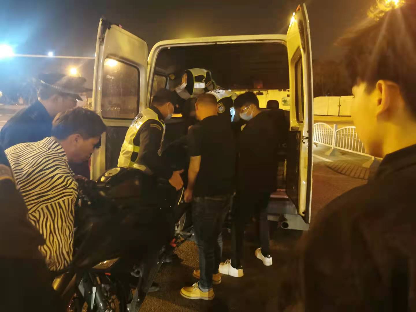 張港第一時間將掌握的信息上報帶班組長趙銀龍,隨后趕到現(xiàn)場的趙銀龍,一邊將受傷的摩托車手扶至路旁休息,一邊組織隊員維護現(xiàn)場交通秩序,引導車輛有序通行。