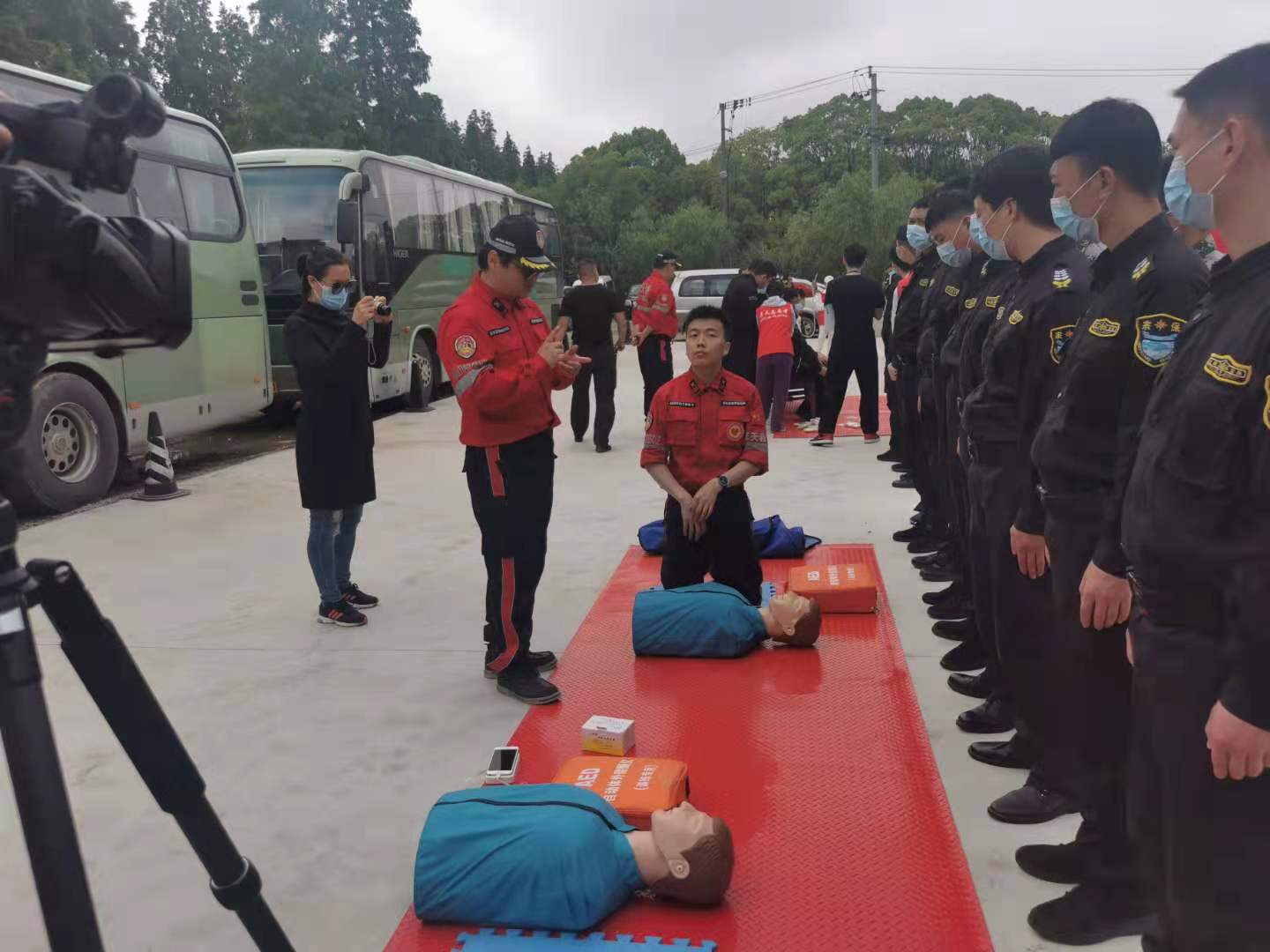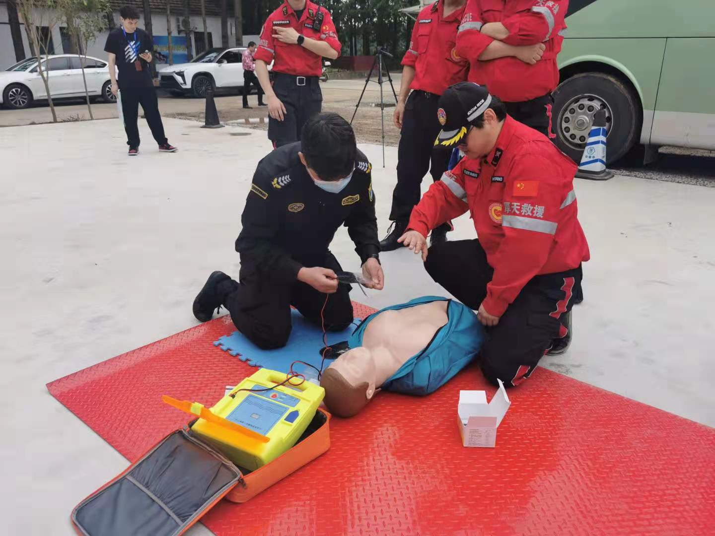 隨后,應(yīng)急救援老師又組織大家學(xué)習(xí)心肺復(fù)蘇、氣道管理、止血、包扎、固定等急救基礎(chǔ)知識(shí),進(jìn)行相關(guān)技能的演示操作, 教大家如何正確處理現(xiàn)場情況、怎樣對(duì)受傷人員開展臨時(shí)急救。