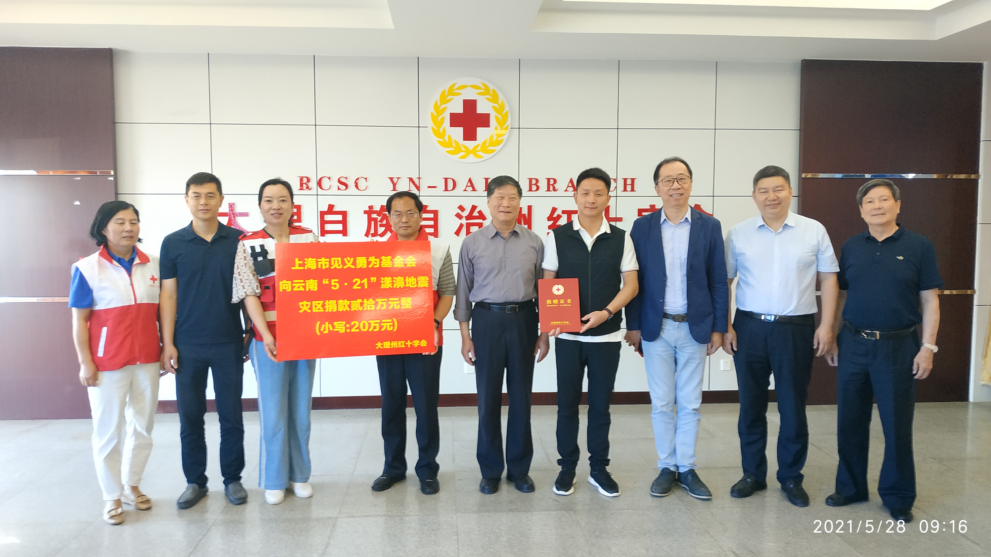 接著,一行人趕到云南省大理白族自治州,向自治州紅十字會捐款20萬元,用于云南大理“5.21”地震災(zāi)后重建,幫助災(zāi)區(qū)群眾渡過難關(guān)。