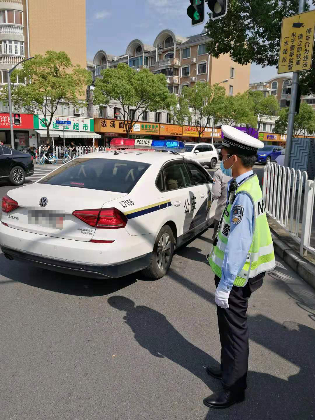 小女孩到學(xué)校后,發(fā)現(xiàn)學(xué)校當(dāng)天不上課,就趕緊跑出來找媽媽,但媽媽已經(jīng)開車走了。于是,小女孩便找到在崗位上值勤的余志凱。