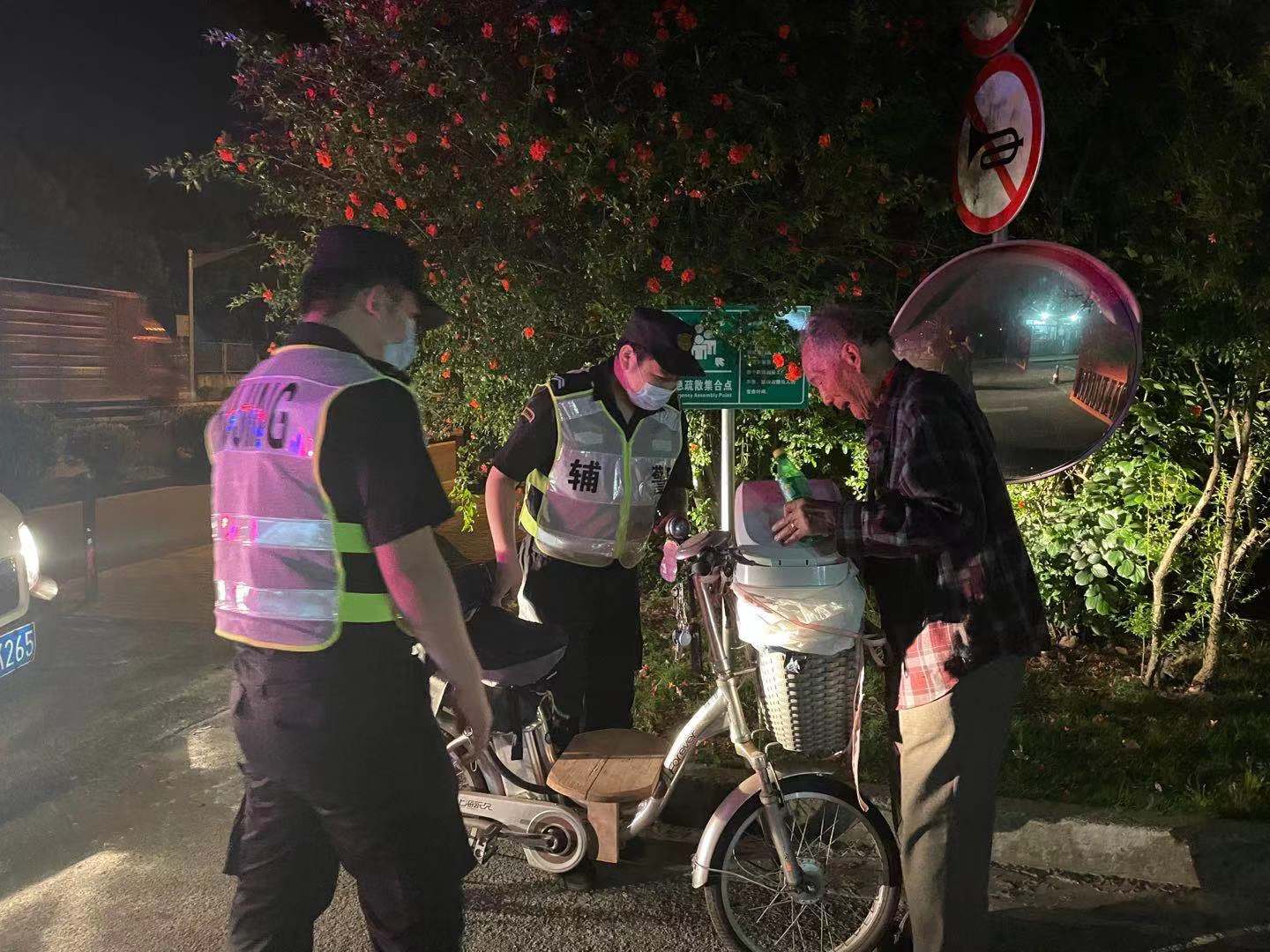 當(dāng)天20:46,宗保車巡隊(duì)員接到金橋派出所綜合指揮室發(fā)出的“金穗路1268號門口,有一位90歲老爺爺騎電瓶車迷途的警情”,便第一時(shí)間趕到現(xiàn)場。經(jīng)了解,老爺爺下午騎車從家里出來辦事,因天黑再加上年紀(jì)大,忘記了回家的路。但值得慶幸的是,老爺爺記得自己所住小區(qū)的名字。