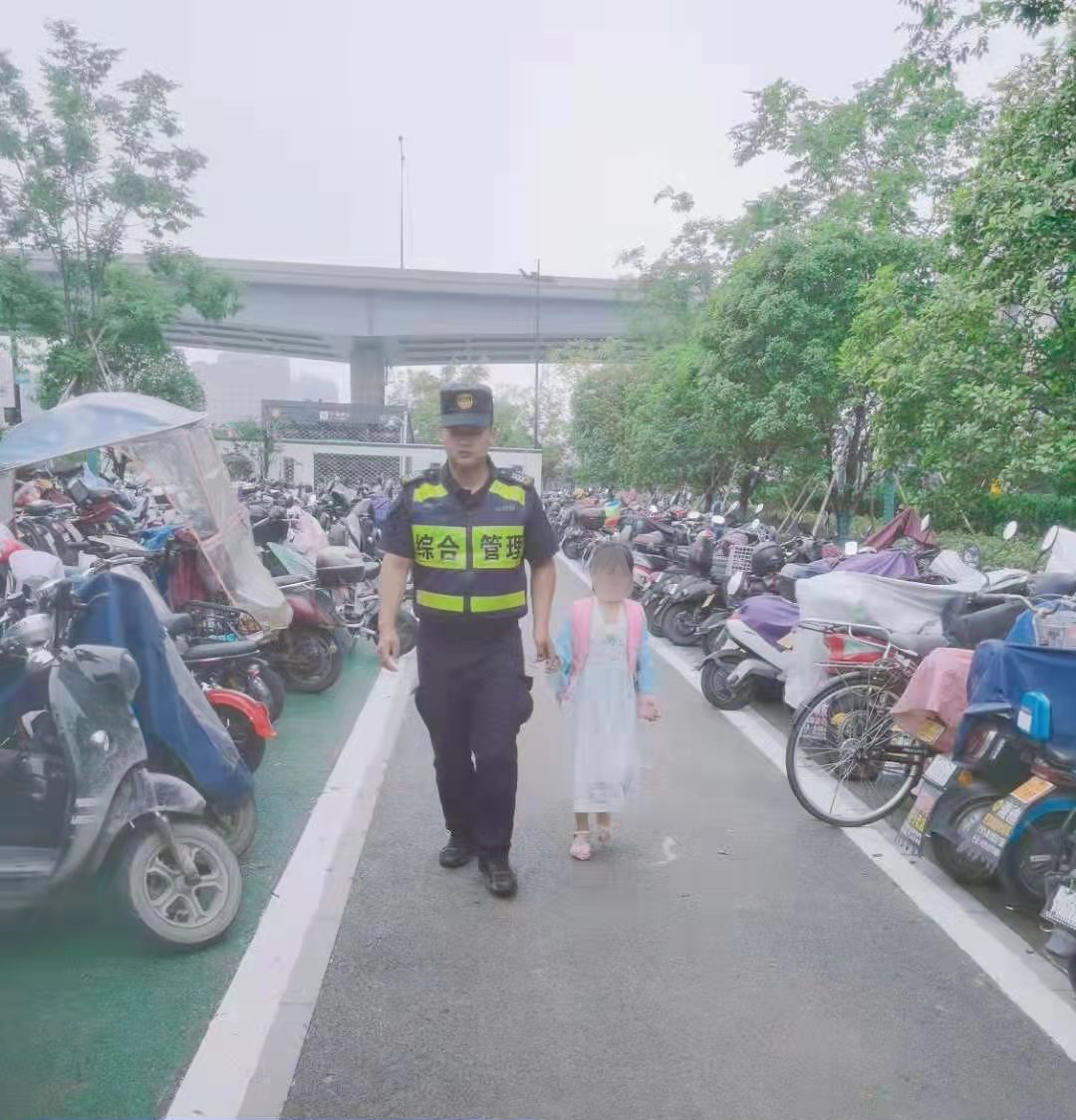 余志凱將情況上報(bào)項(xiàng)目隊(duì)長付牛,付牛隨即報(bào)警并向所屬城管中隊(duì)報(bào)告。隨后,余志凱按指示帶小女孩前往學(xué)校,找到學(xué)校校長說明情況,校長及時(shí)聯(lián)系小女孩家長,由校長幫助將小女孩帶回。