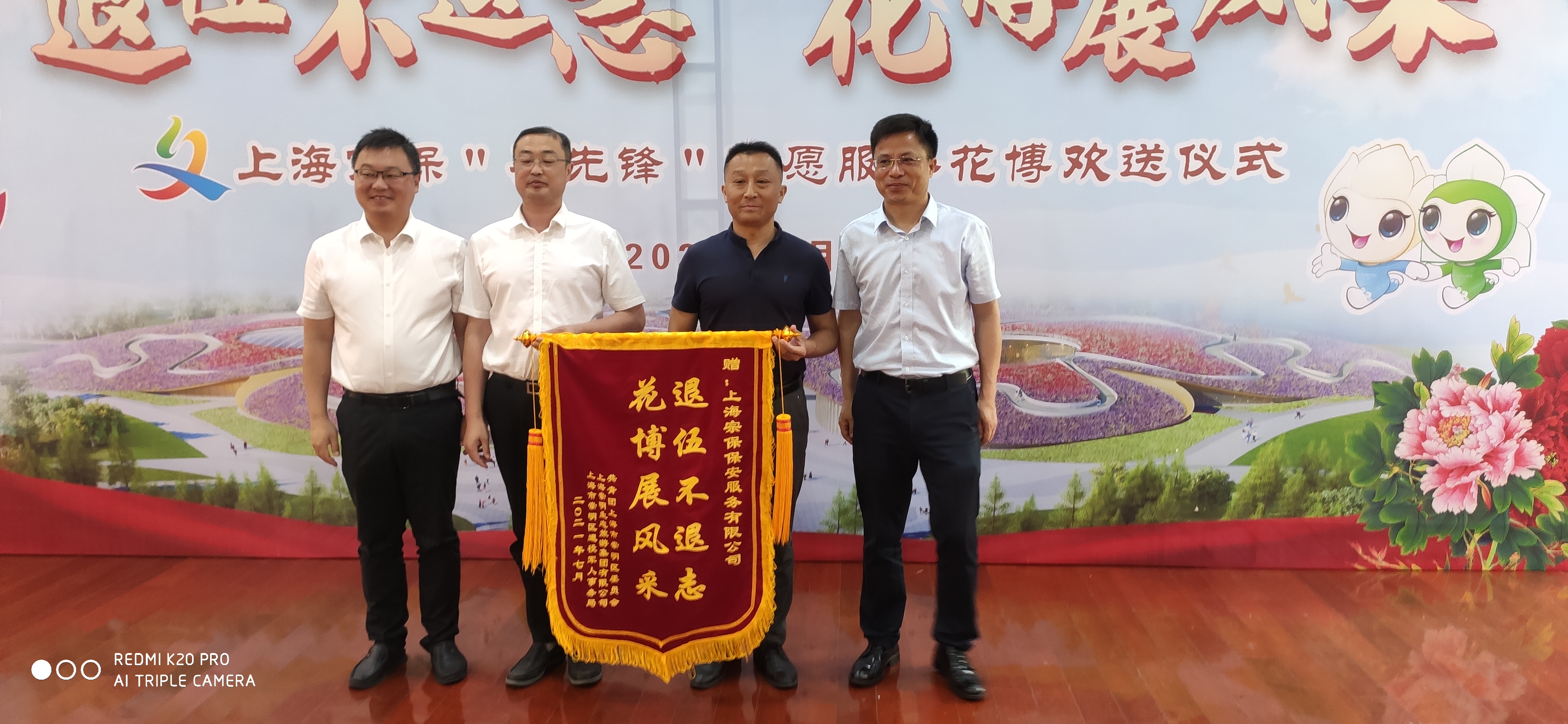 7月3日,“退伍不退志 花博展風(fēng)采”上海宗保“兵先鋒”志愿服務(wù)花博會歡送儀式在崇明區(qū)人民武裝部舉行,標志著宗保公司退役軍人志愿隊護航花博會的志愿服務(wù)保障任務(wù)圓滿完成。