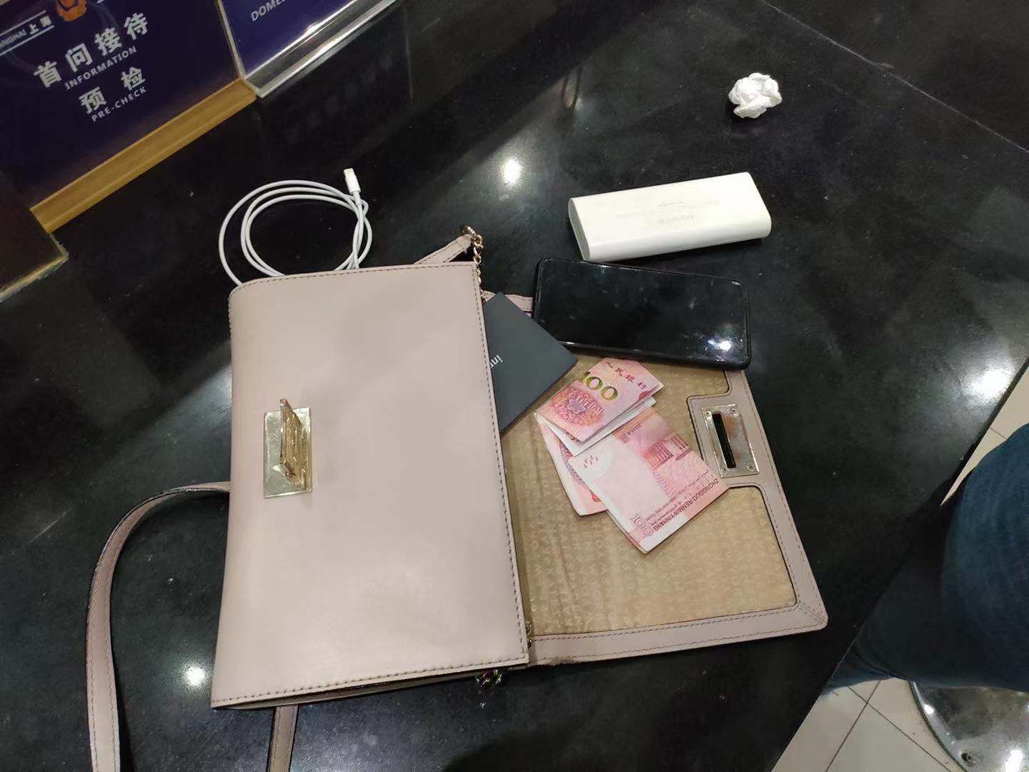 當(dāng)班組長(zhǎng)立即趕到現(xiàn)場(chǎng)了解情況,并向治安所值班民警報(bào)告,隨后按值班民警的指示將單肩包帶回所里。經(jīng)值班民警檢查,包內(nèi)有一部OPPO手機(jī)、500元現(xiàn)金、身份證和銀行卡各1張。