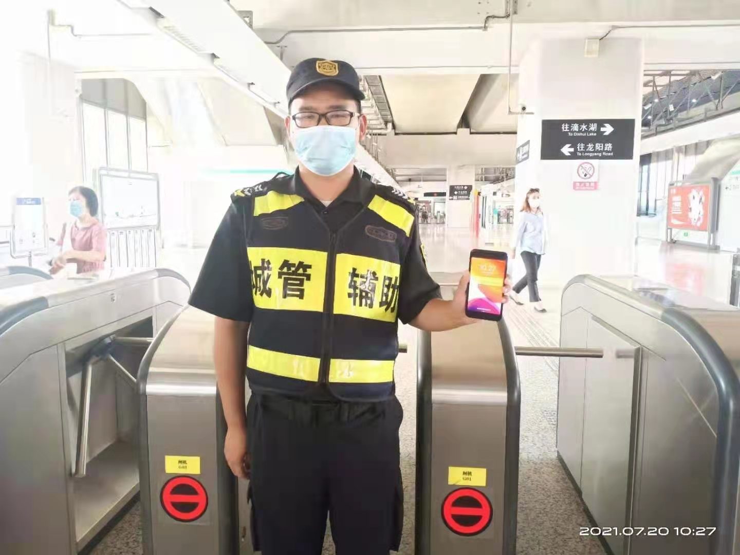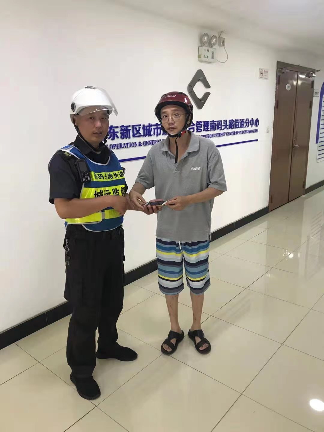 10分鐘后,仍沒(méi)有人前來(lái)尋找,周?chē)?guó)棟就把手機(jī)上交班組長(zhǎng),然后回到崗位繼續(xù)值勤。10:46,一男子打來(lái)電話尋找手機(jī),班組長(zhǎng)與他約定在周浦城管中隊(duì)碰面。