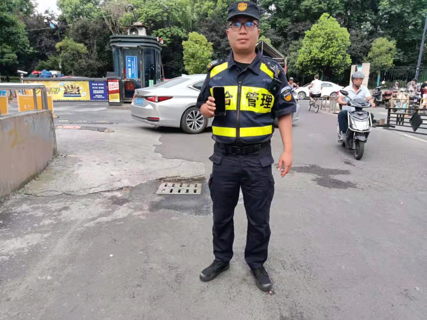 當(dāng)天8:50,關(guān)帥杰在聽(tīng)悅路和拱亮路交叉口附近巡邏時(shí),撿到一部手機(jī),就立即上報(bào)項(xiàng)目隊(duì)長(zhǎng),并按指示在原地等待。