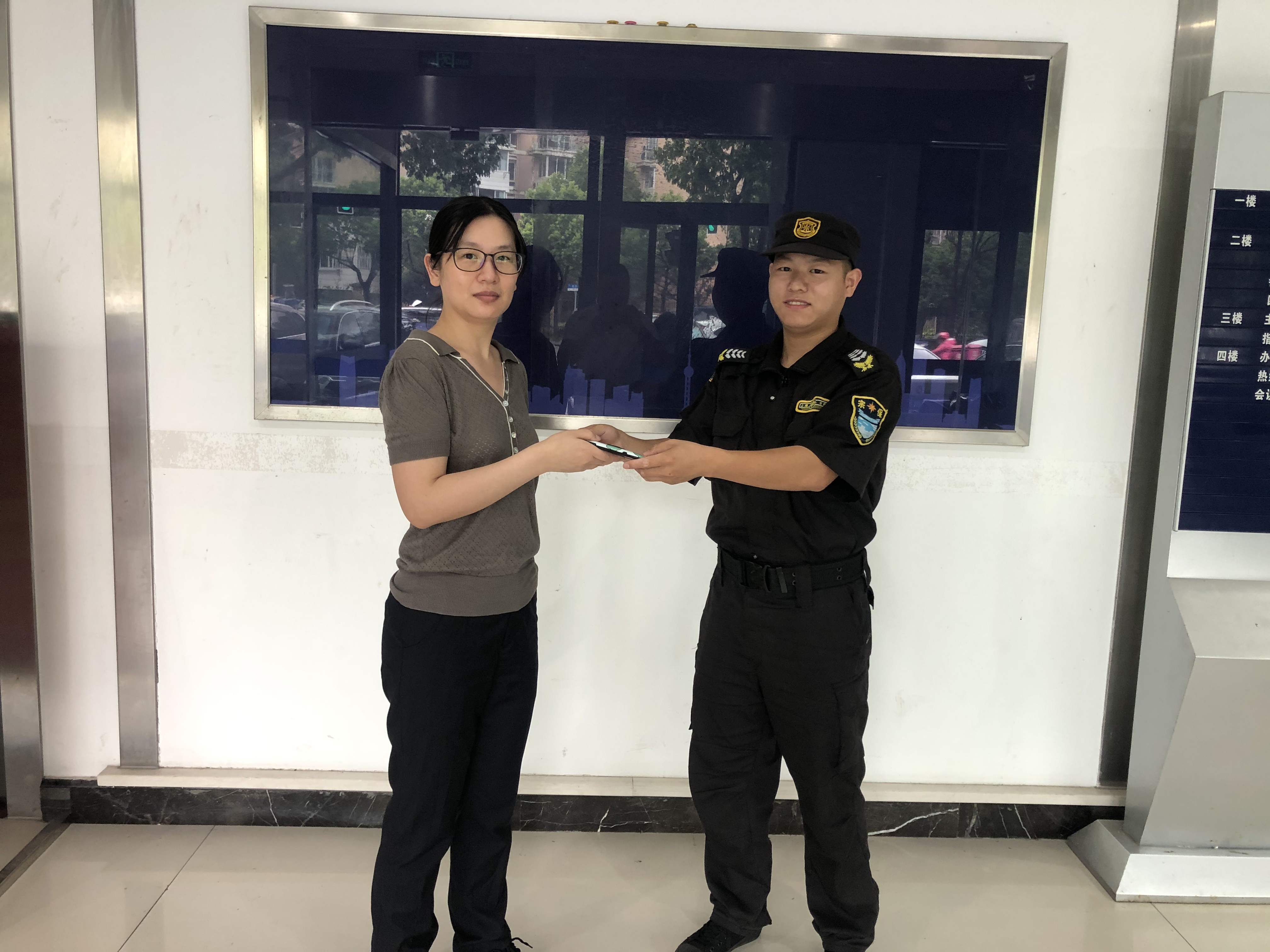 7月23日,宗保公司駐浦東機(jī)場(chǎng)項(xiàng)目隊(duì)員撿到手機(jī)歸還失主,受到好評(píng)。