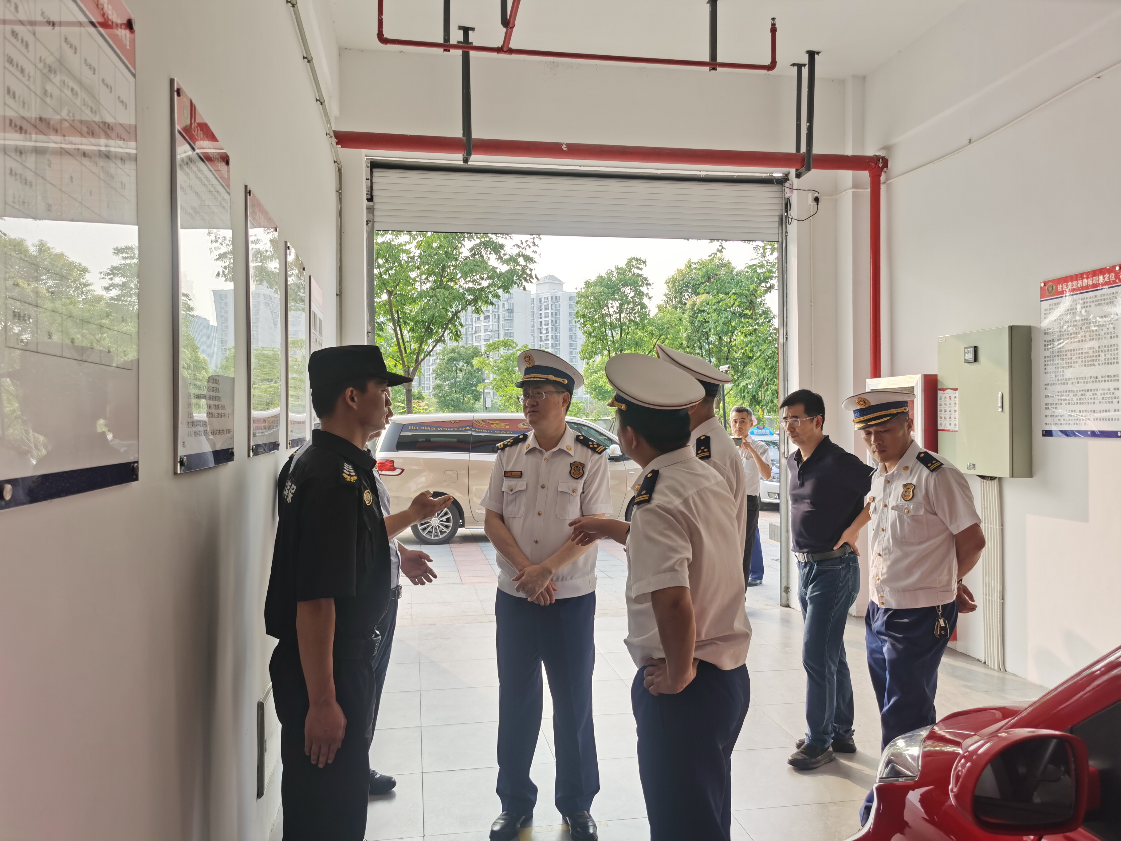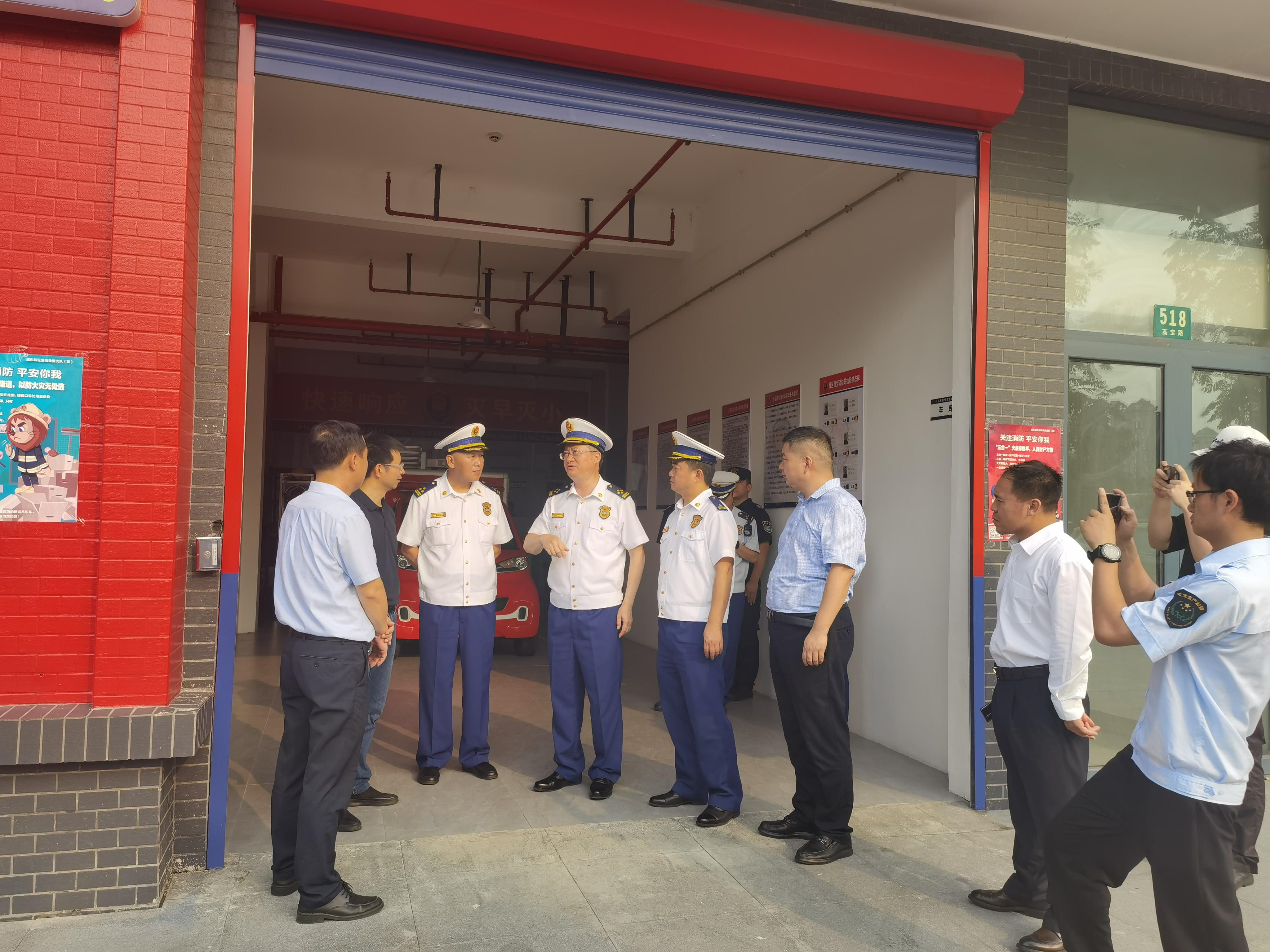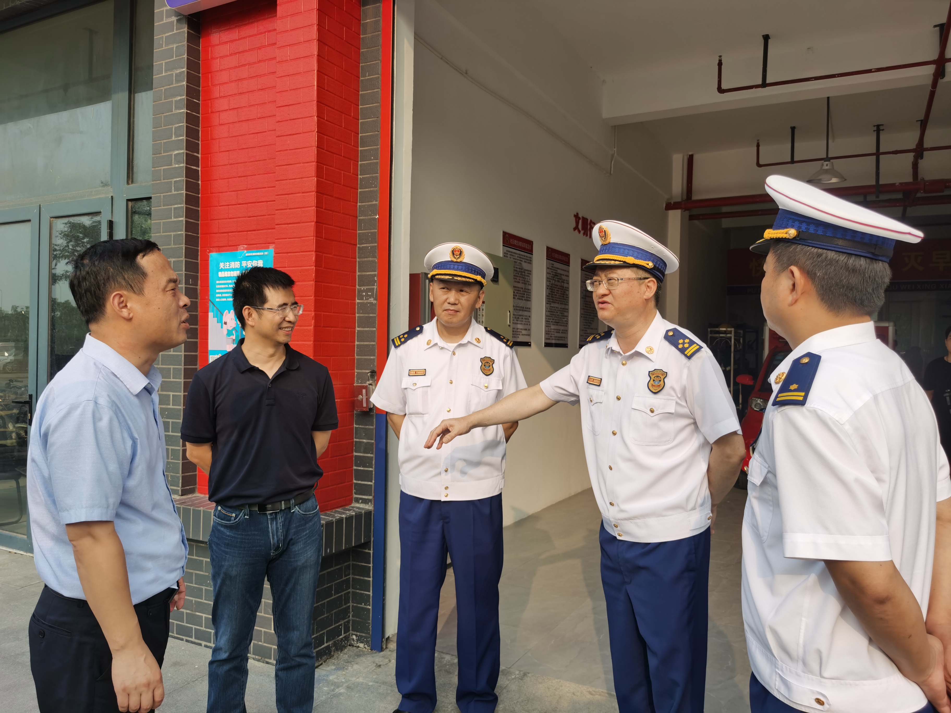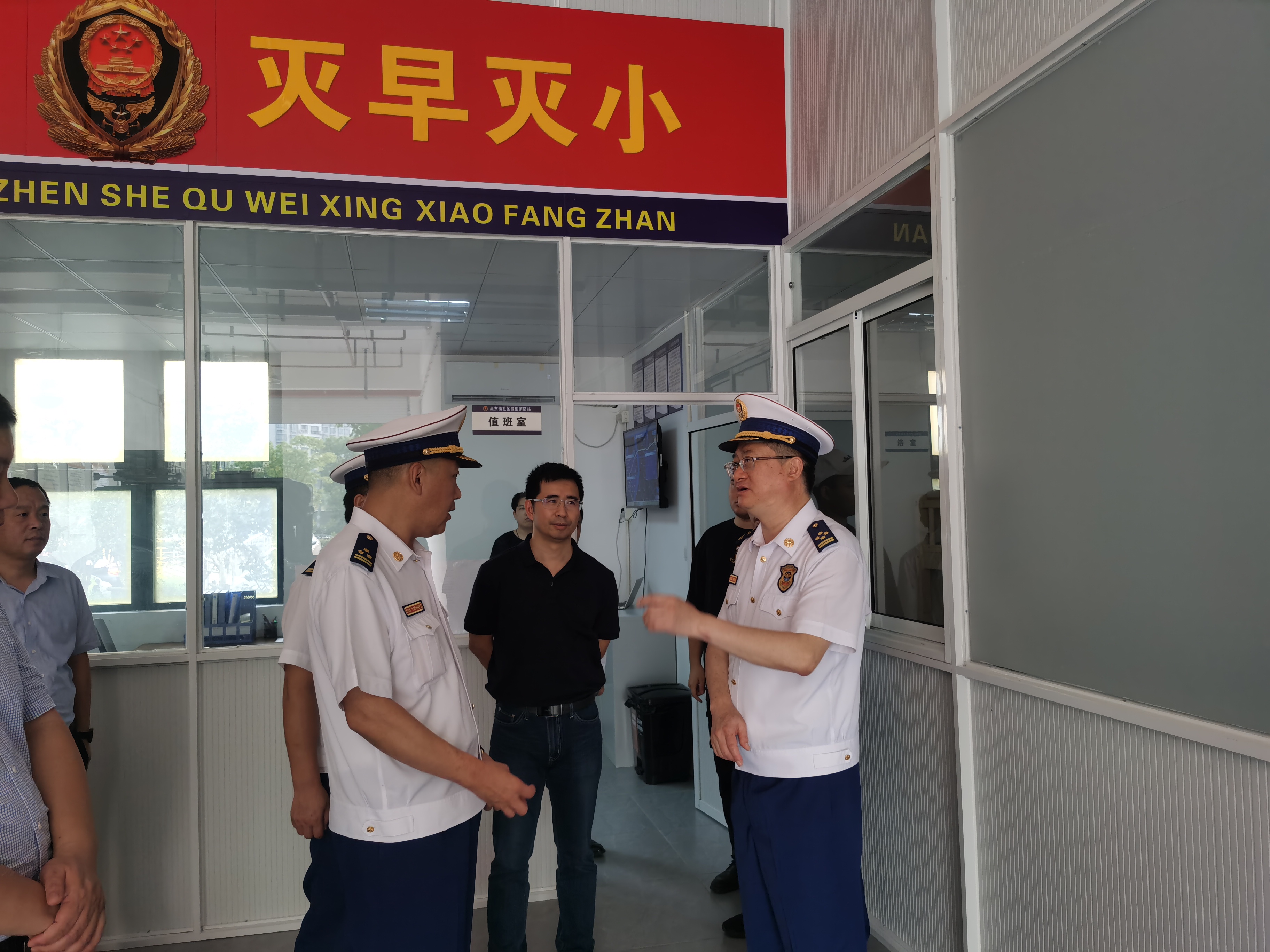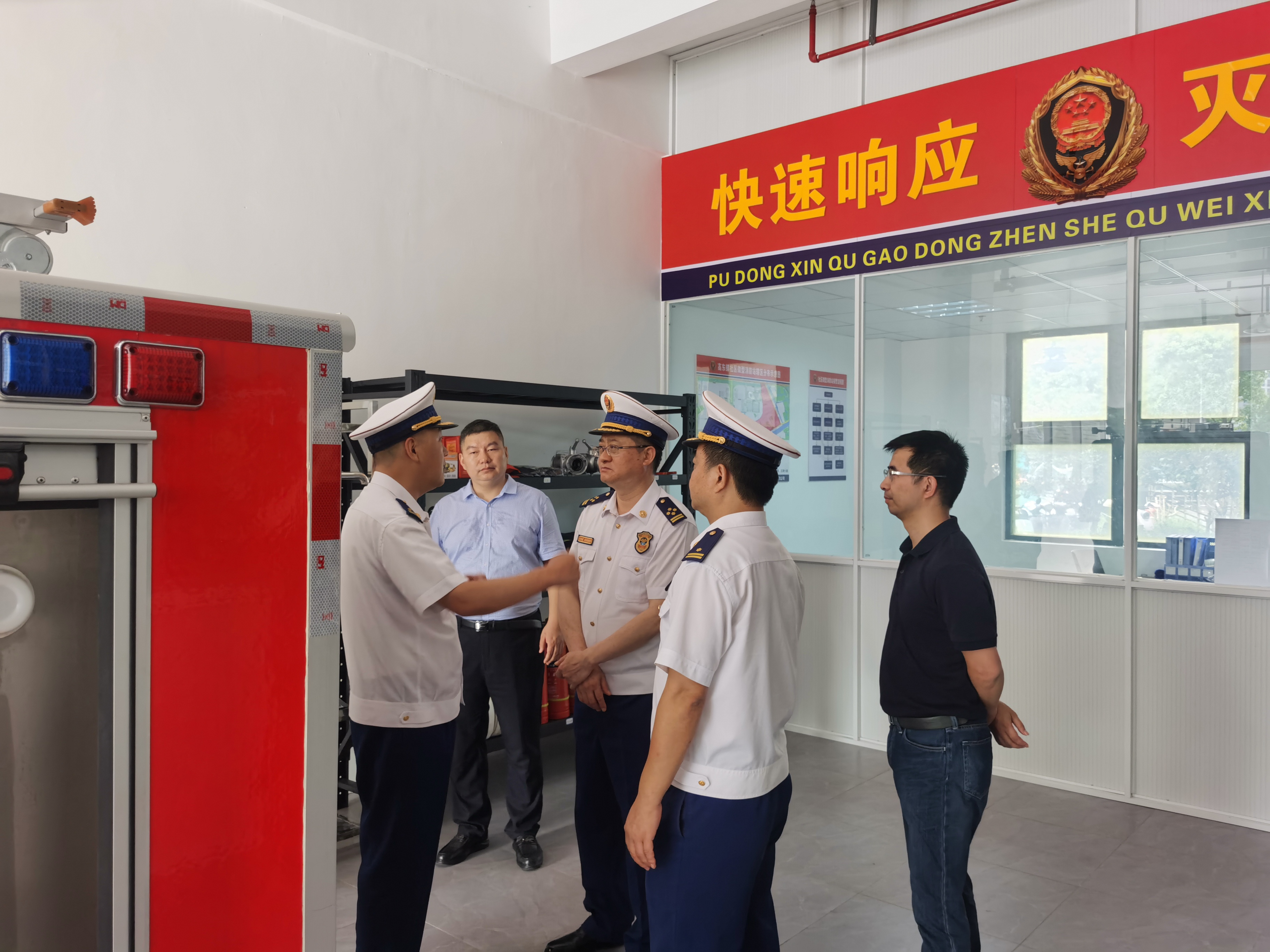 7月30日,上海市消防救援總隊(duì)總隊(duì)長(zhǎng)李偉民、浦東新區(qū)消防救援支隊(duì)支隊(duì)長(zhǎng)姜亦山一行到高東鎮(zhèn)社區(qū)微型消防站調(diào)研指導(dǎo),宗保公司副總經(jīng)理?xiàng)铊比膛阃?br />