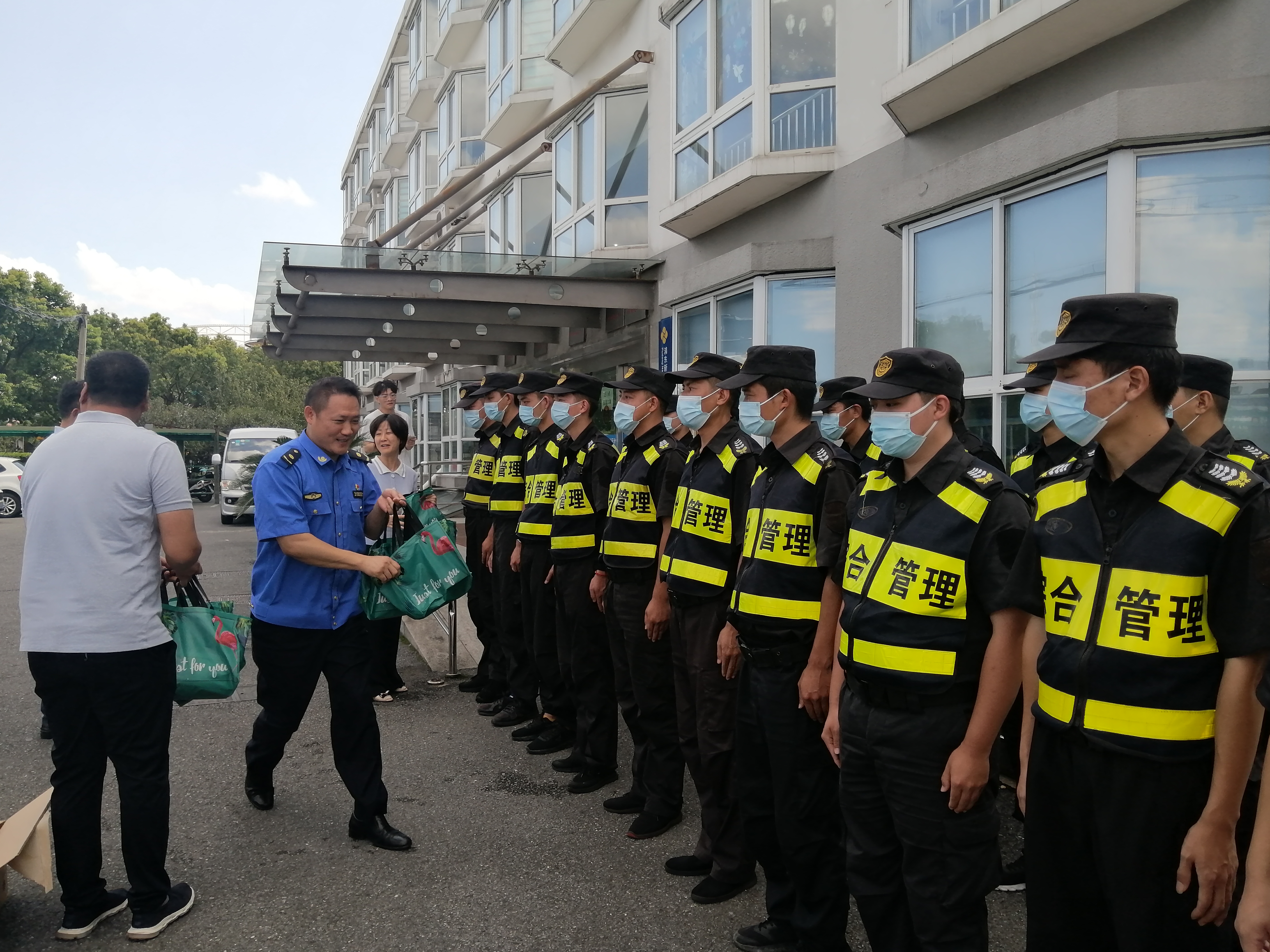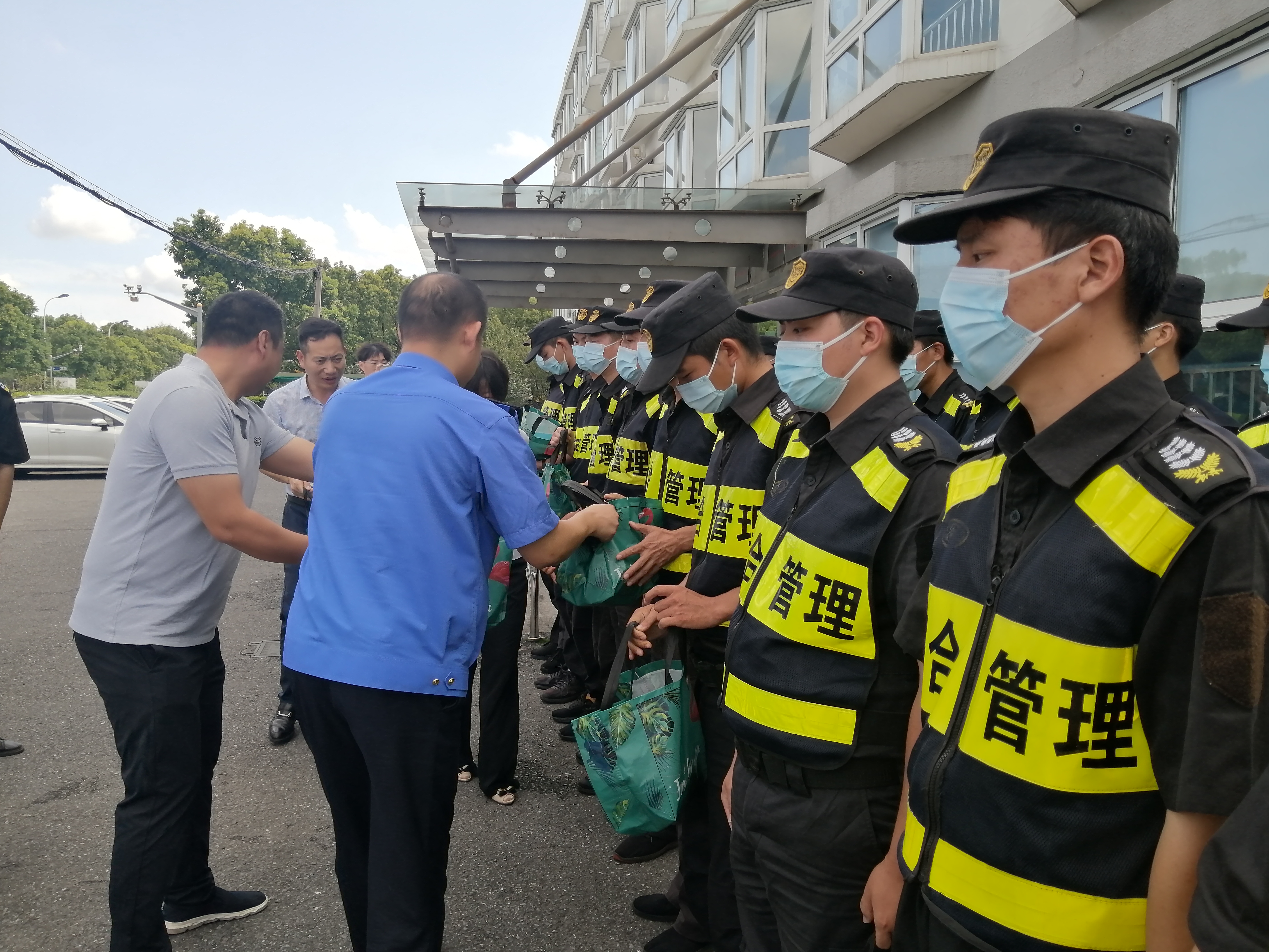 王哲副隊(duì)長給隊(duì)員們送上了飲料等防暑降溫用品,感謝大家為輔助城市管理和維護(hù)城區(qū)秩序所作的貢獻(xiàn),叮囑隊(duì)員們要落實(shí)好疫情防控措施,確保防護(hù)安全。同時(shí),提醒大家高溫天氣下,一定要做好防暑降溫工作,注意勞逸結(jié)合,確保身體健康。