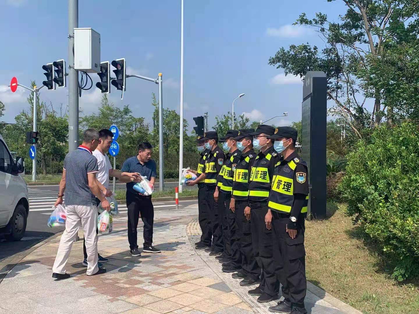 領(lǐng)導(dǎo)的關(guān)懷,大家十分感謝,并表示將不辜負(fù)各位領(lǐng)導(dǎo)的關(guān)心和期望,不懼高溫、腳踏實(shí)地完成好甲方安排的各項(xiàng)工作任務(wù),努力為社區(qū)營造整潔優(yōu)美的市容環(huán)境添磚加瓦。