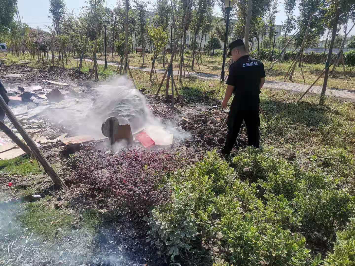 8月28日,宗保公司駐周浦鎮(zhèn)界浜村微型消防站人員及時(shí)出警,幫助收廢品師傅滅火。