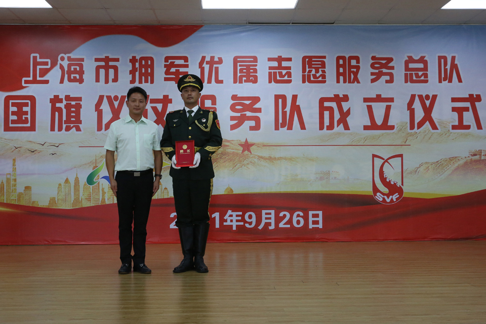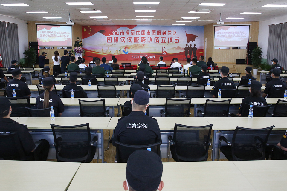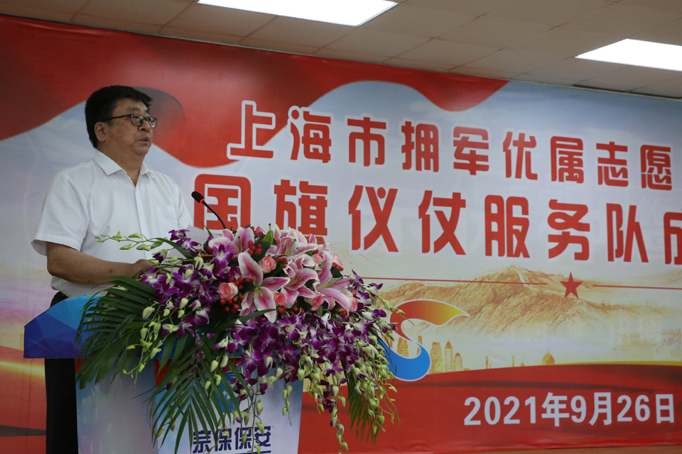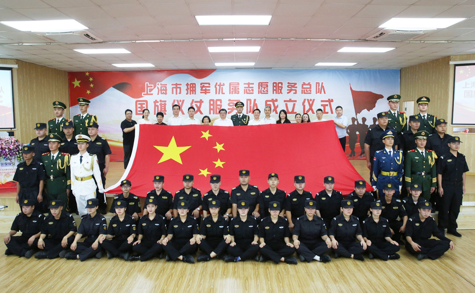 9月26日,上海市擁軍優(yōu)屬志愿服務(wù)總隊(duì)在宗保公司大禮堂舉行國旗儀仗服務(wù)隊(duì)成立授旗儀式。