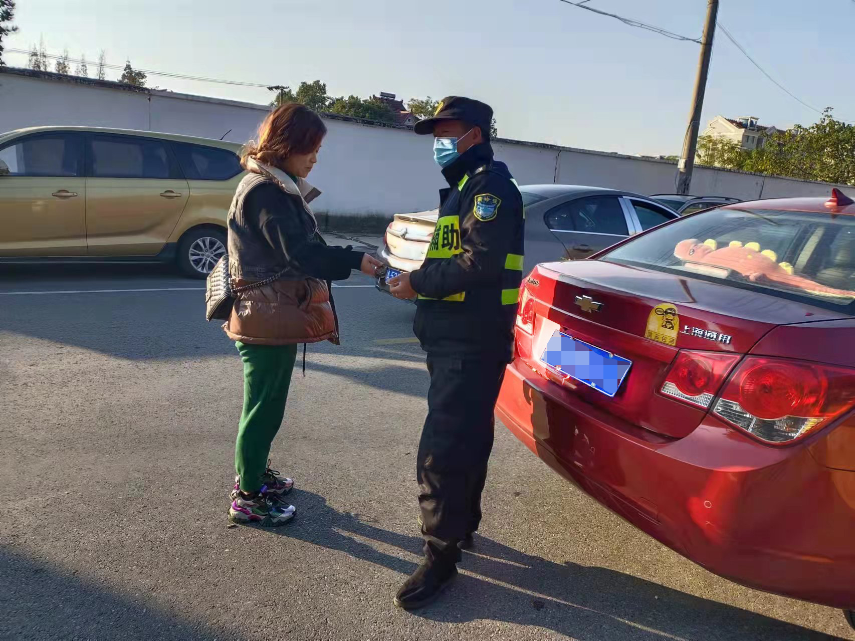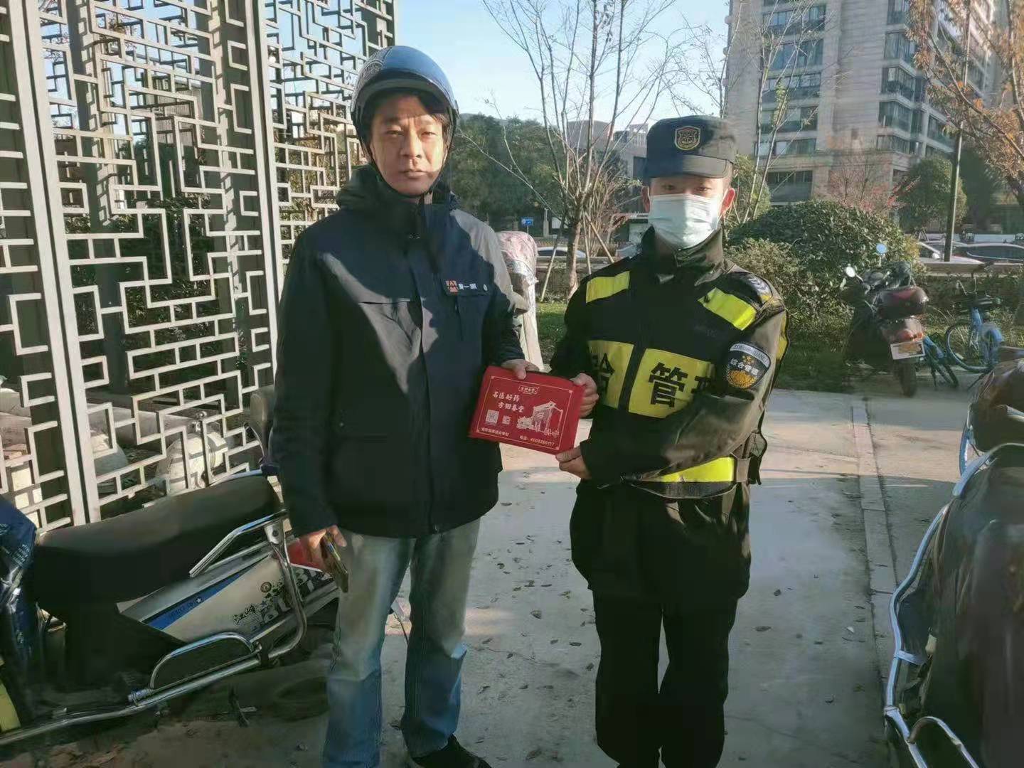 12月1日,宗保公司駐康橋市容項(xiàng)目隊(duì)員撿到汽車鑰匙歸還失主,受到稱贊。