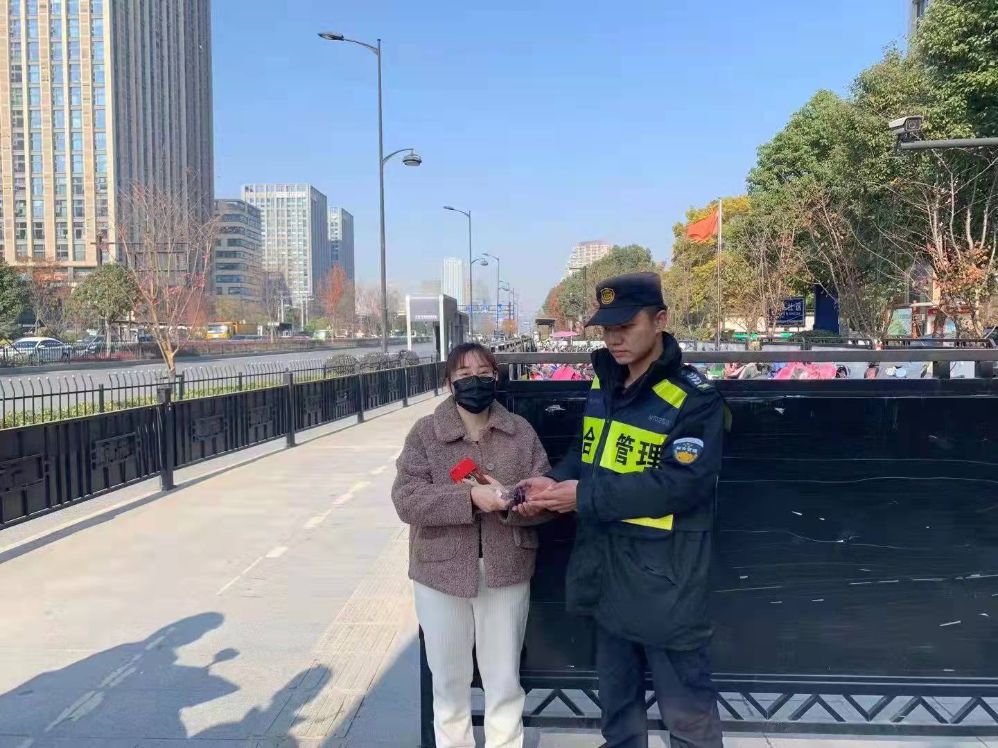 12月9日,宗保公司駐崇明廟鎮(zhèn)市容項(xiàng)目隊(duì)員王成飛撿到錢包歸還失主。