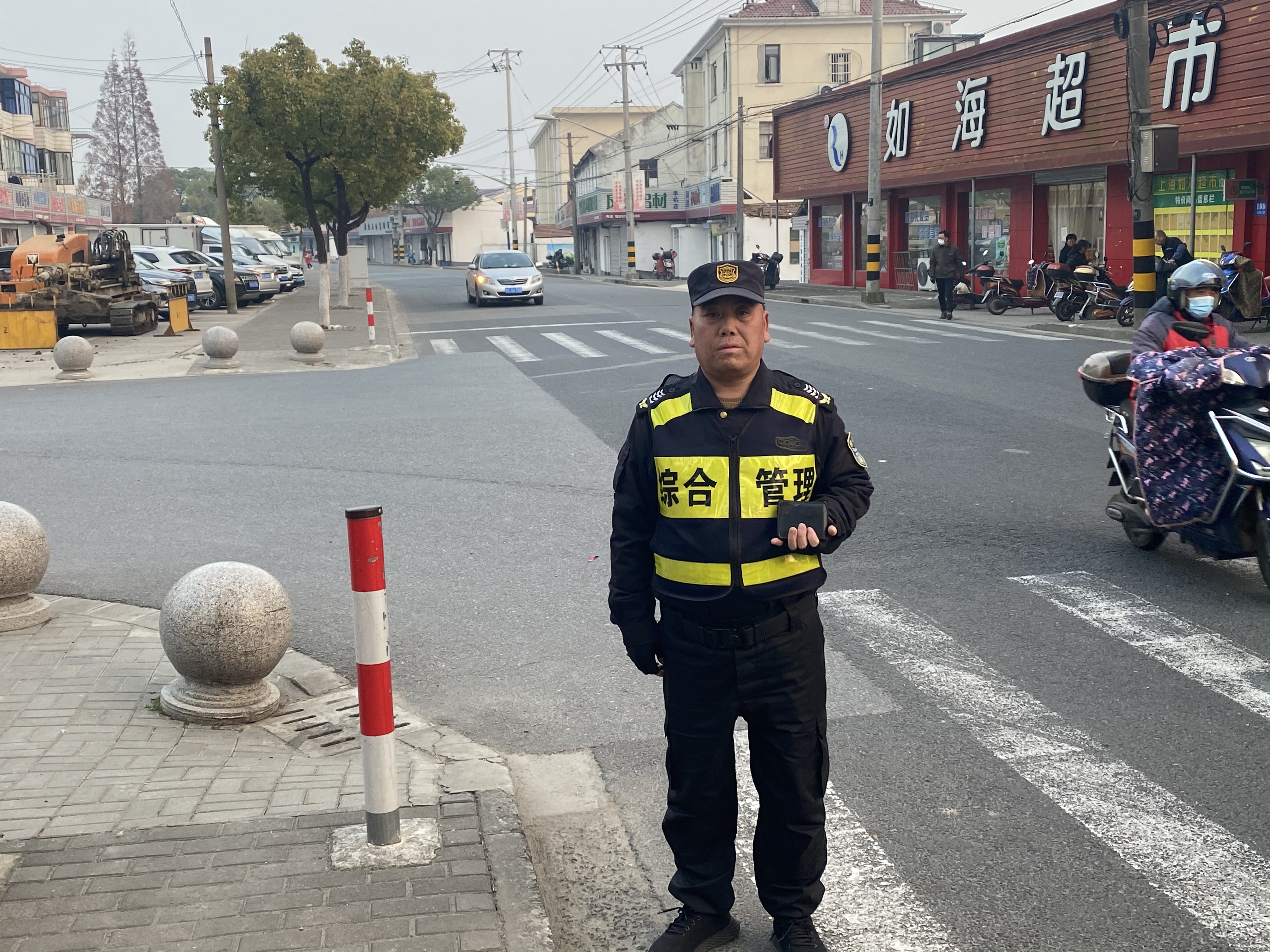 隊(duì)員巡邏撿錢包 上交民警尋失主—崇明廟鎮(zhèn)市容項(xiàng)目隊(duì)員撿到錢包