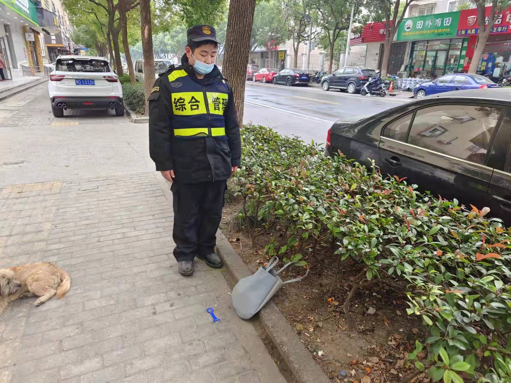 巡查途中撿提包 原地守候還失主—高橋市容項(xiàng)目隊(duì)員撿到手提包