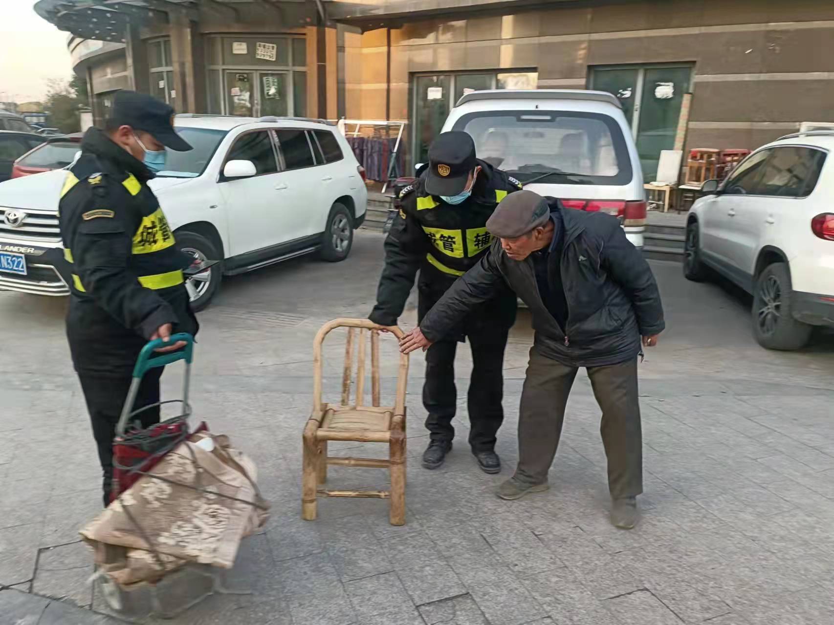 在等待民警時,細(xì)心的徐周發(fā)現(xiàn)老人的腿一直在發(fā)抖,就趕忙跑到附近的商鋪借了一把椅子,攙扶老人坐下。