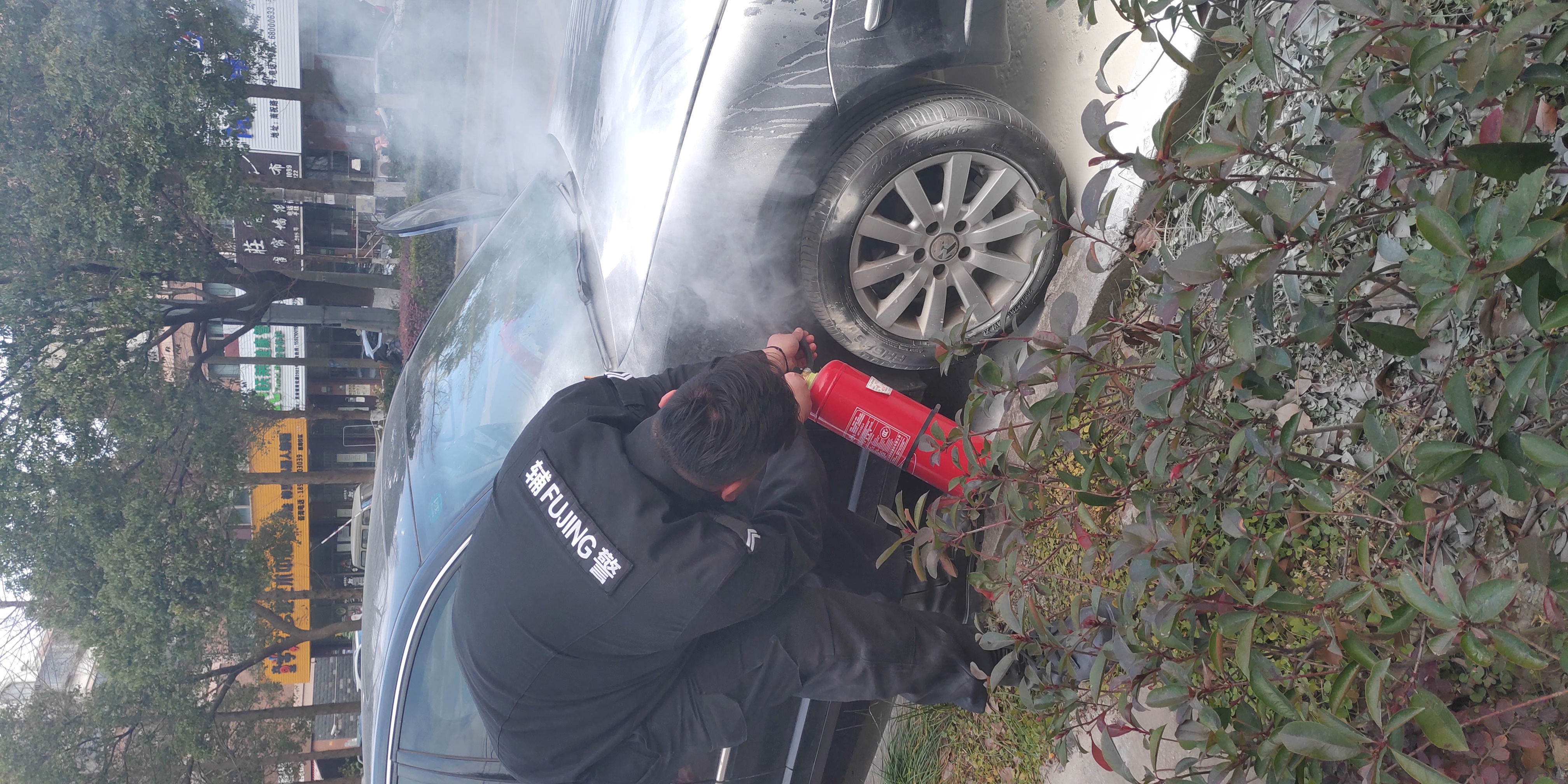 車輛自燃現(xiàn)險(xiǎn)情 及時(shí)撲滅降損失—惠南輔警項(xiàng)目隊(duì)員幫助自燃車輛滅火