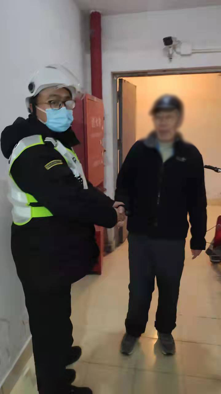 1月7日,宗保公司駐周東輔警項(xiàng)目隊(duì)員孫亞鋒幫助迷路老人回家。