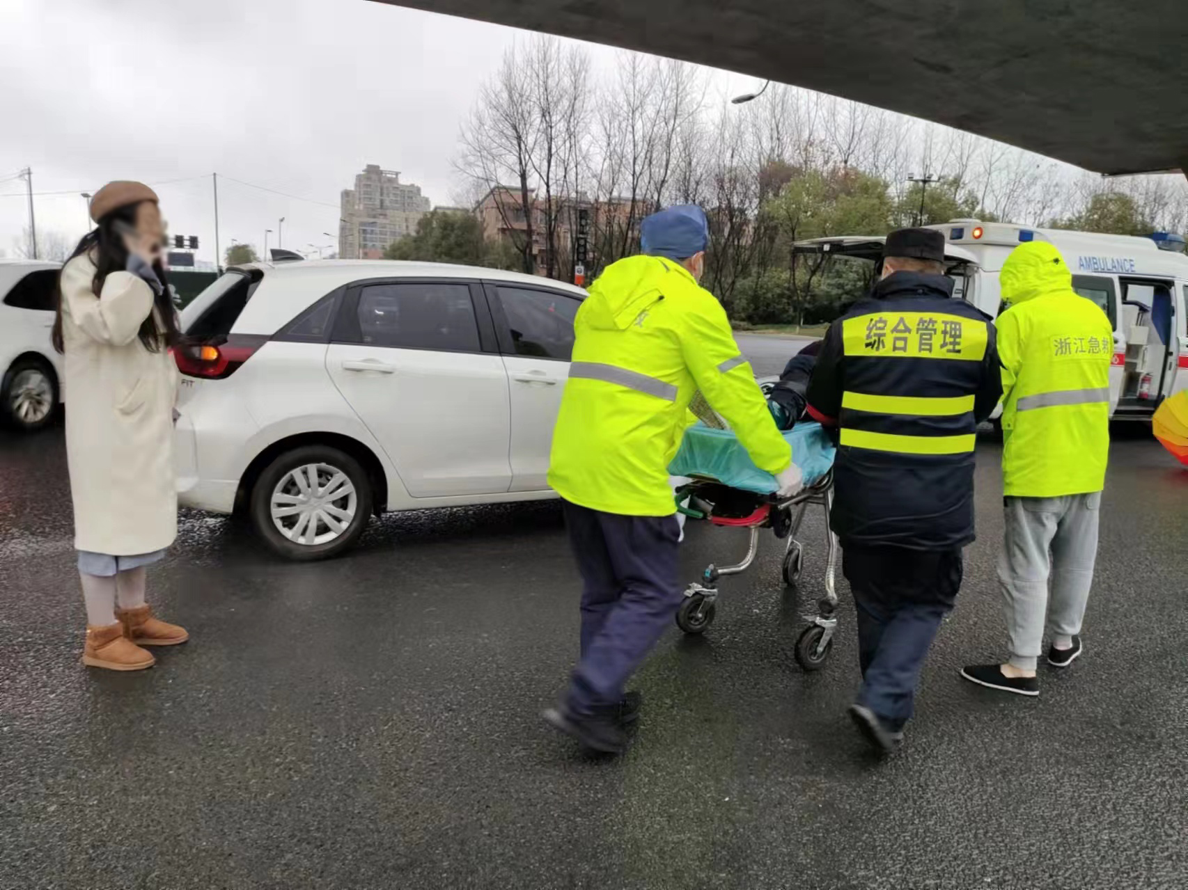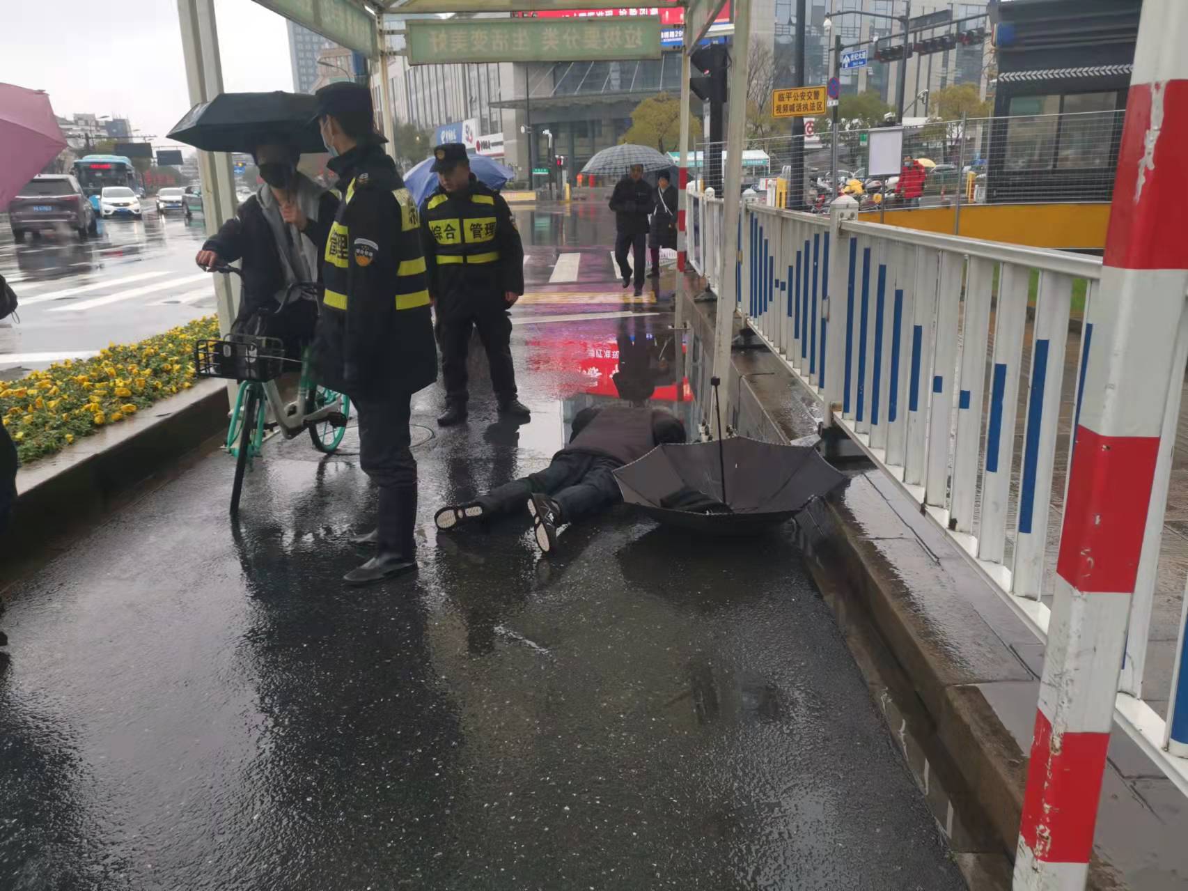 1月27日,浙江民泰駐閑林城管項(xiàng)目隊(duì)員及時(shí)救助車禍?zhǔn)軅印?br />