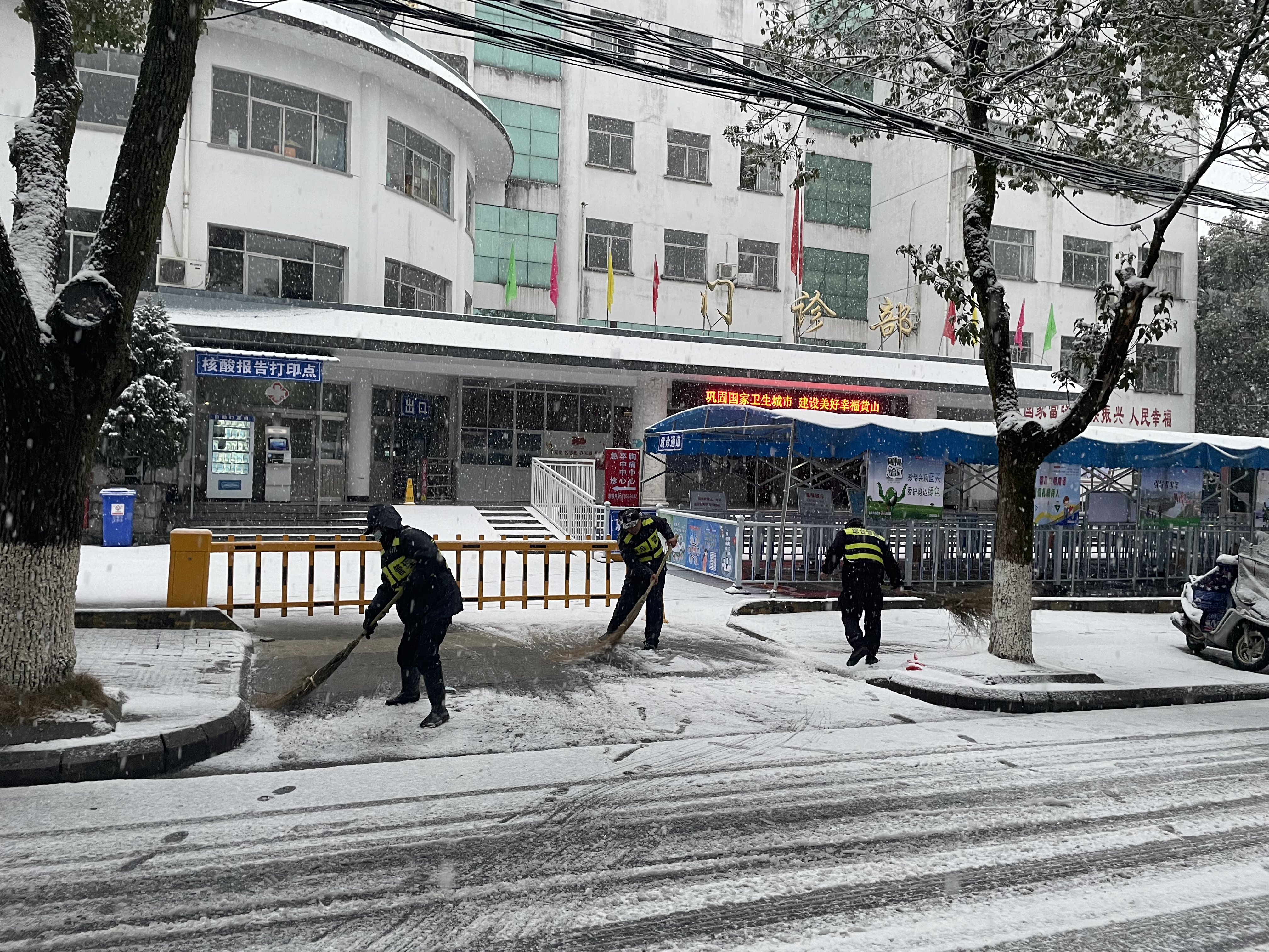 2月6日,黃山、杭州多地普降大雪。雪后的大地銀裝素裹,但也給交通和廣大市民的出行安全帶來(lái)困擾。
