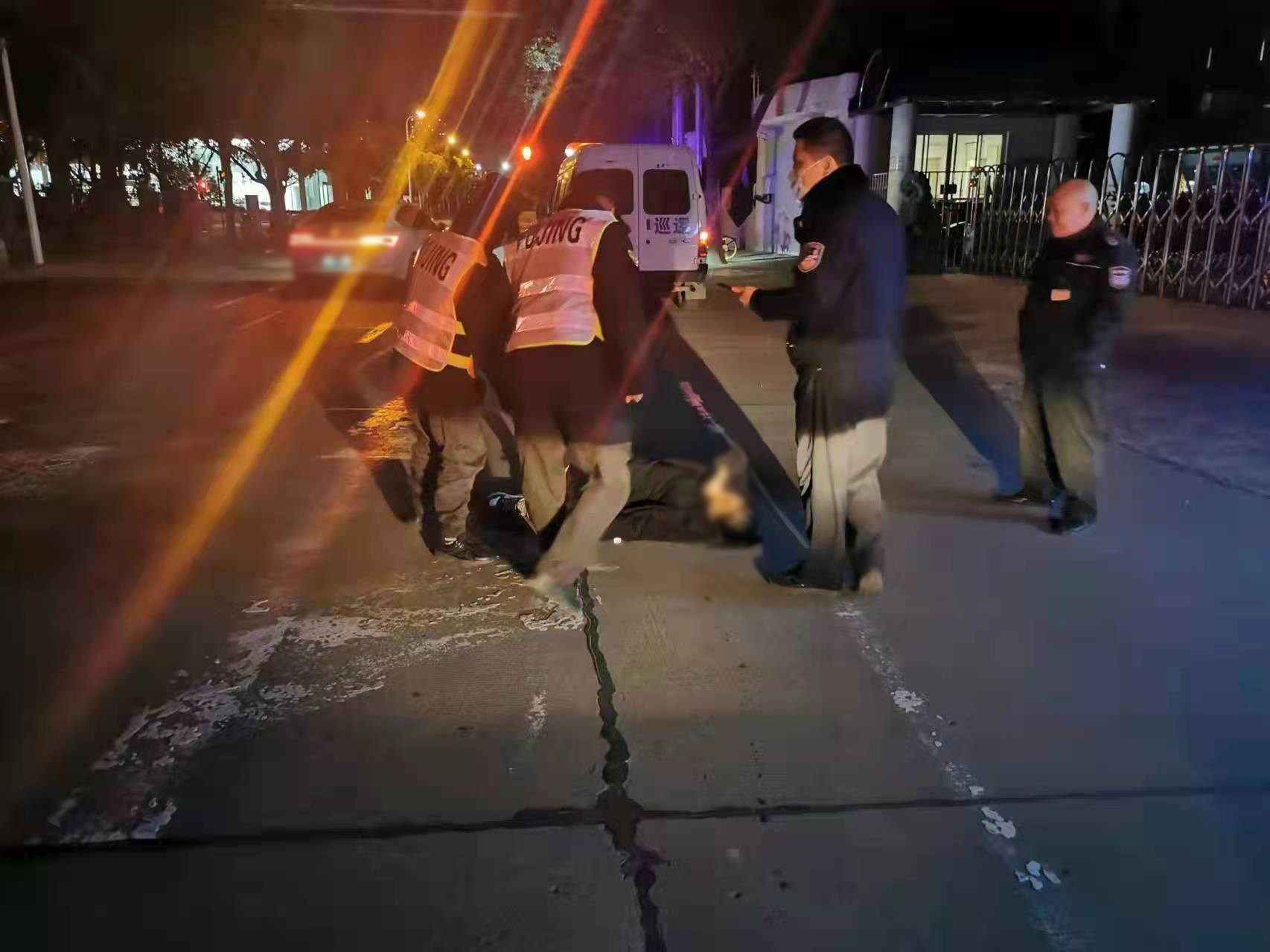 當(dāng)日21:55,趙銀龍、劉騰飛、宗小玉在金滬路川橋路附近巡邏時(shí),發(fā)現(xiàn)一名女子躺在機(jī)動(dòng)車車道上,路上來往車輛較多,存在極大的安全隱患,便立即靠邊停車,上前查看。