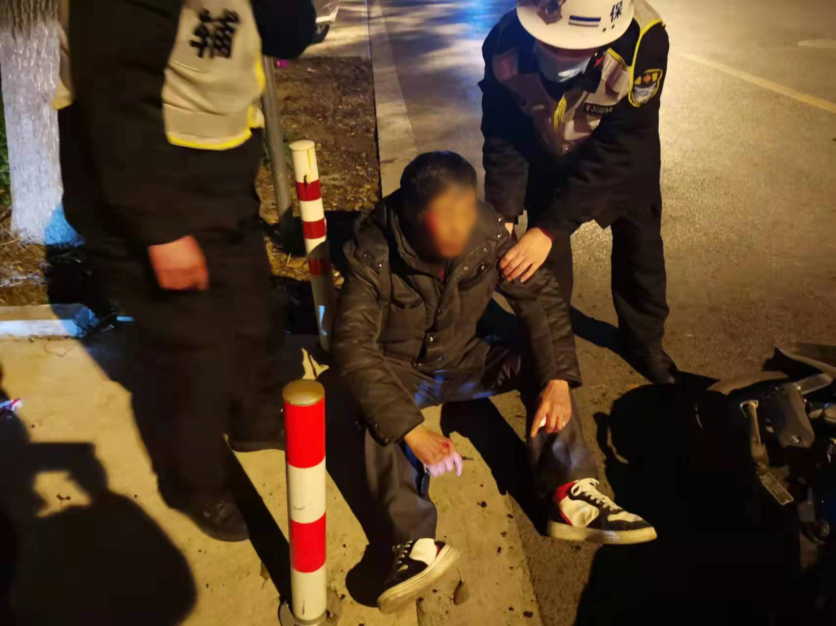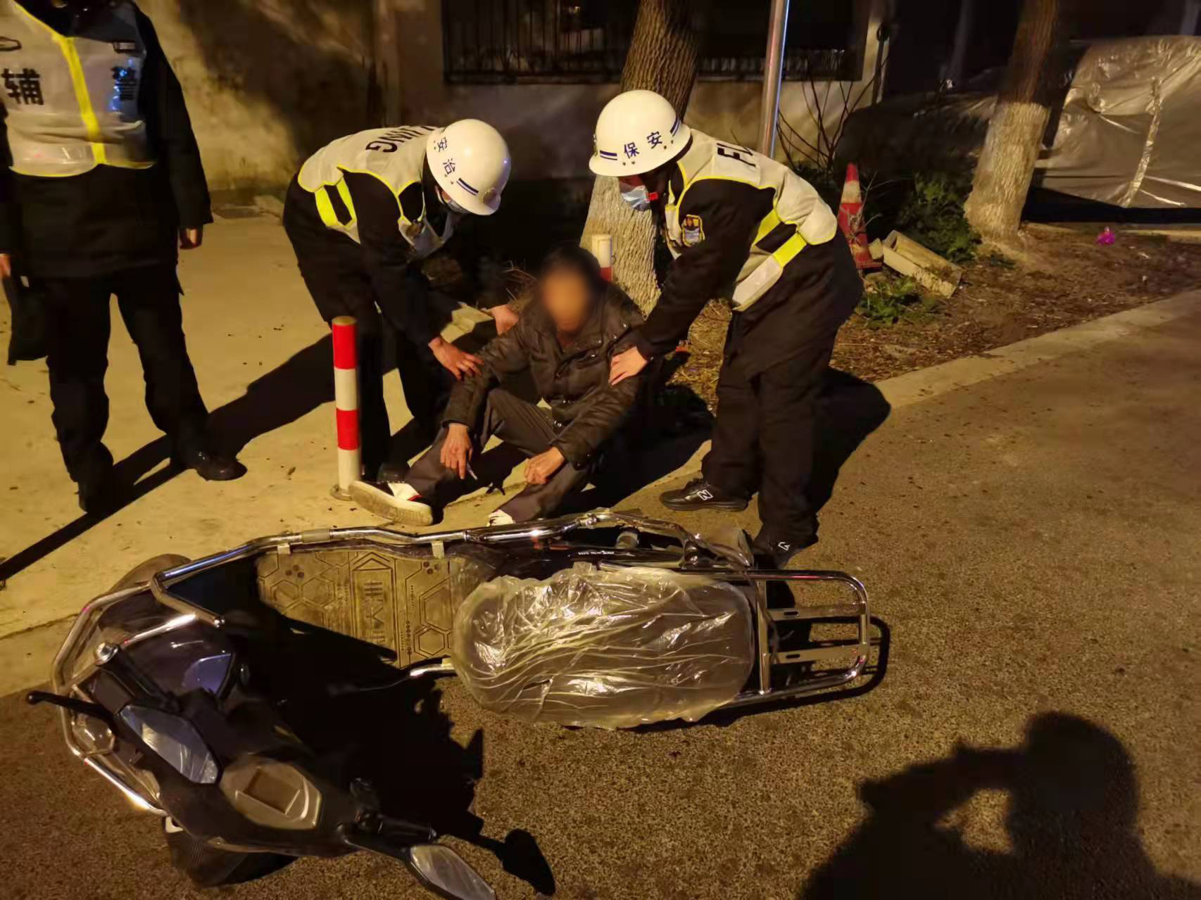 當日凌晨1點,佟超、王義、譚浪在三灶路附近巡邏時,發(fā)現(xiàn)一位老人騎電動車摔倒在地。三人見狀立即上前將老人從地上扶起,老人臉上、手掌有多處擦傷,細心的佟超趕緊掏出紙巾幫老人擦拭,王義則立即將情況上報班組長。