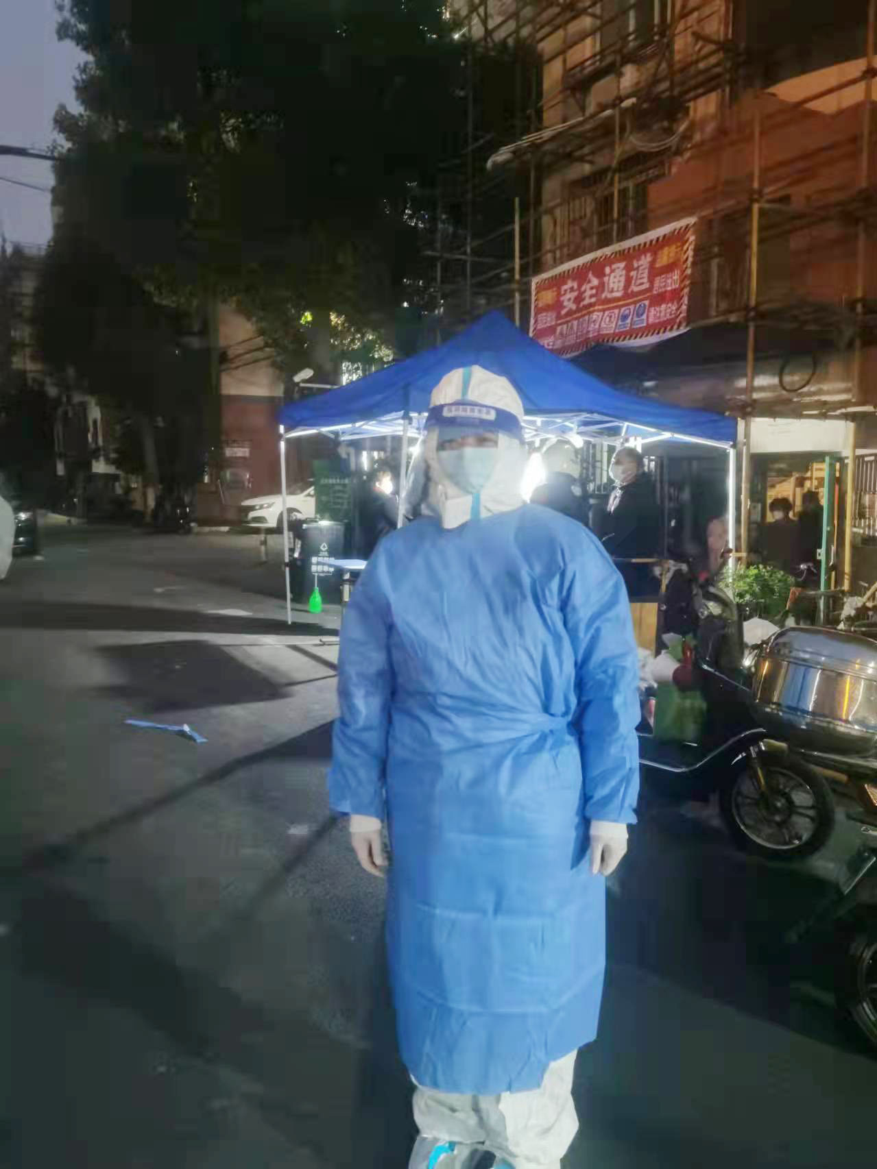 姜凱松是公司駐周浦項(xiàng)目的一名輔警,負(fù)責(zé)協(xié)助維持核酸檢測現(xiàn)場秩序。他每天要接觸上萬名居民,時(shí)時(shí)提醒居民準(zhǔn)備好核酸檢測登記碼、戴好口 罩、保持好安全距離。有時(shí)連續(xù)一整天都無法坐下來休息,工作強(qiáng)度大,風(fēng)險(xiǎn)大,然而姜凱松沒有一絲怨言和害怕,他說:“當(dāng)前應(yīng)以疫情防控大局為重,我是個(gè)普通人,雖然力量有限,但我一定會竭盡全力做好本職工作,為上海的疫情防控添一份力。”