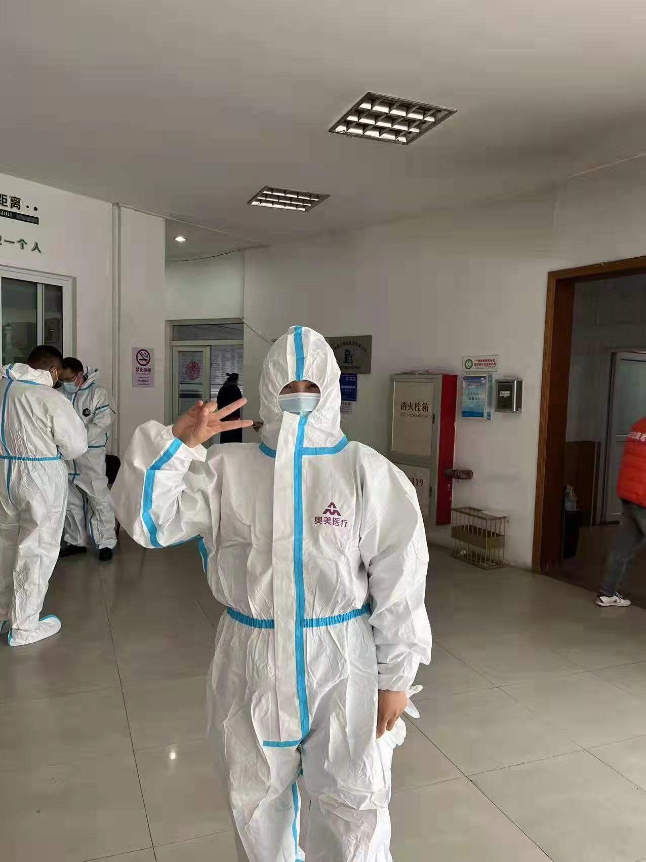 曹秋霞是公司駐新場某定點(diǎn)隔離酒店的一名保安員,平時(shí)需要穿上密不透風(fēng)的防護(hù)服、戴上護(hù)目鏡,為全封閉的隔離酒店提供保障服務(wù),核驗(yàn)出入隔離酒店人員的身份信息,做好房間、走廊、大廳、廚房、廁所等場所消毒,儲備防疫物資。