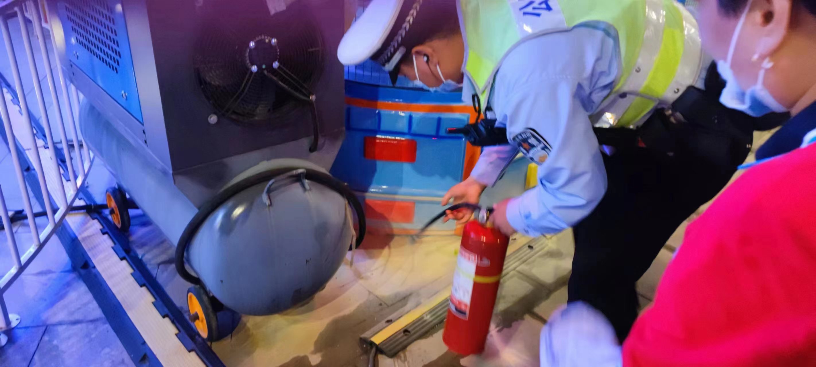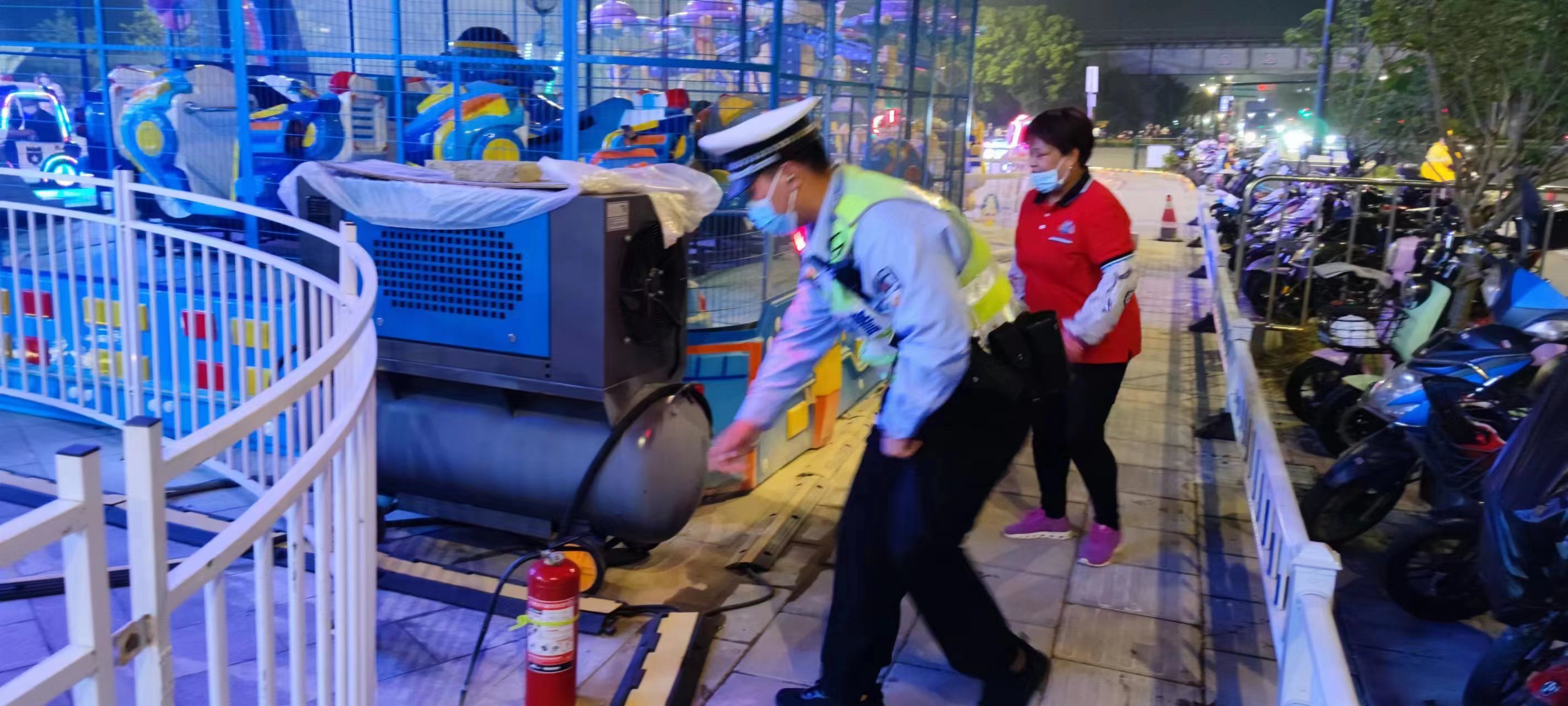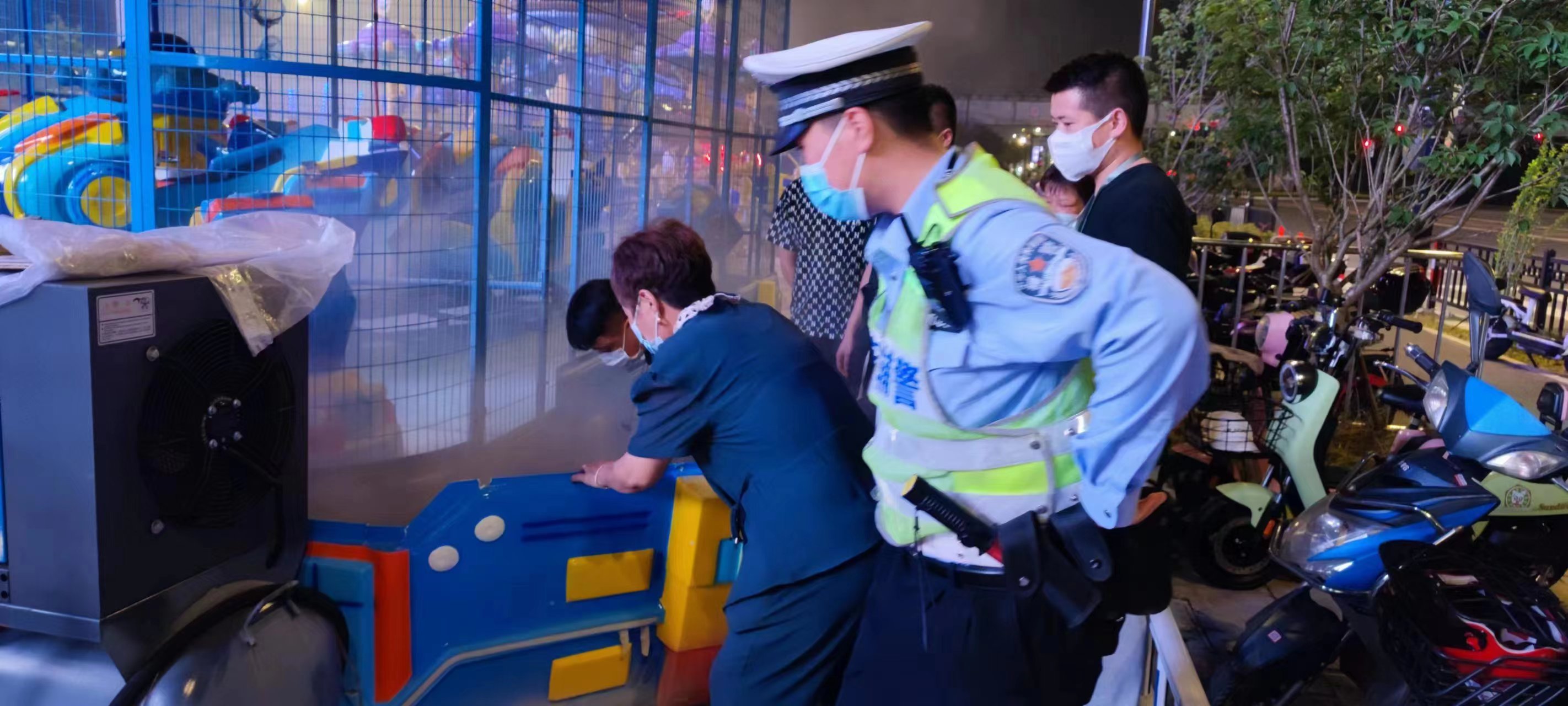 當日19:45,余安國和李家生在泥城萬達廣場1號口附近巡邏時,廣場上一兒童娛樂設施出現(xiàn)故障,發(fā)現(xiàn)有濃煙從設備內(nèi)部冒出。