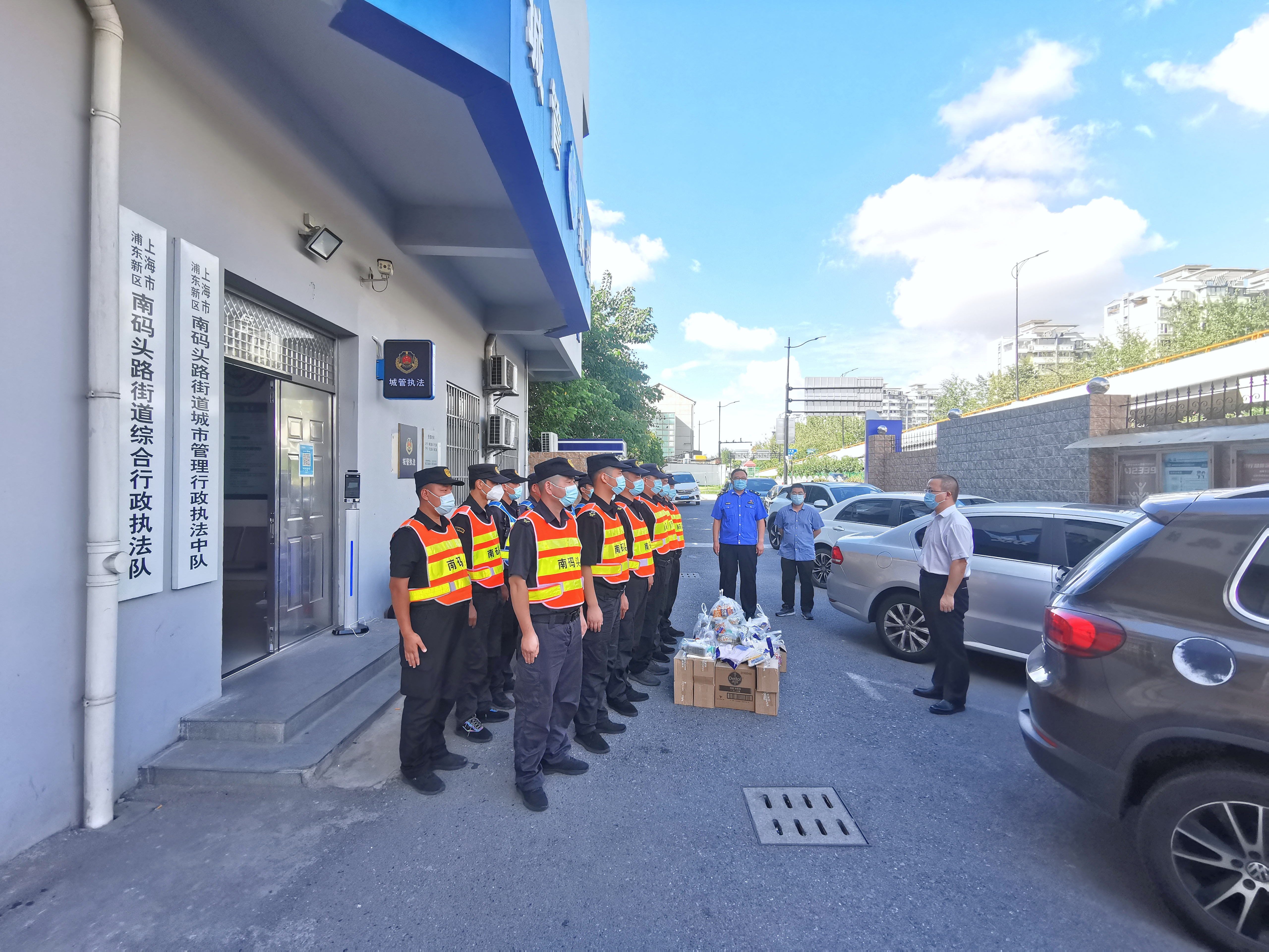 7月29日,浦東南碼頭路街道黨工委委員、辦事處副主任潘丹一行看望慰問高溫下奮戰(zhàn)在一線的宗保公司員工。