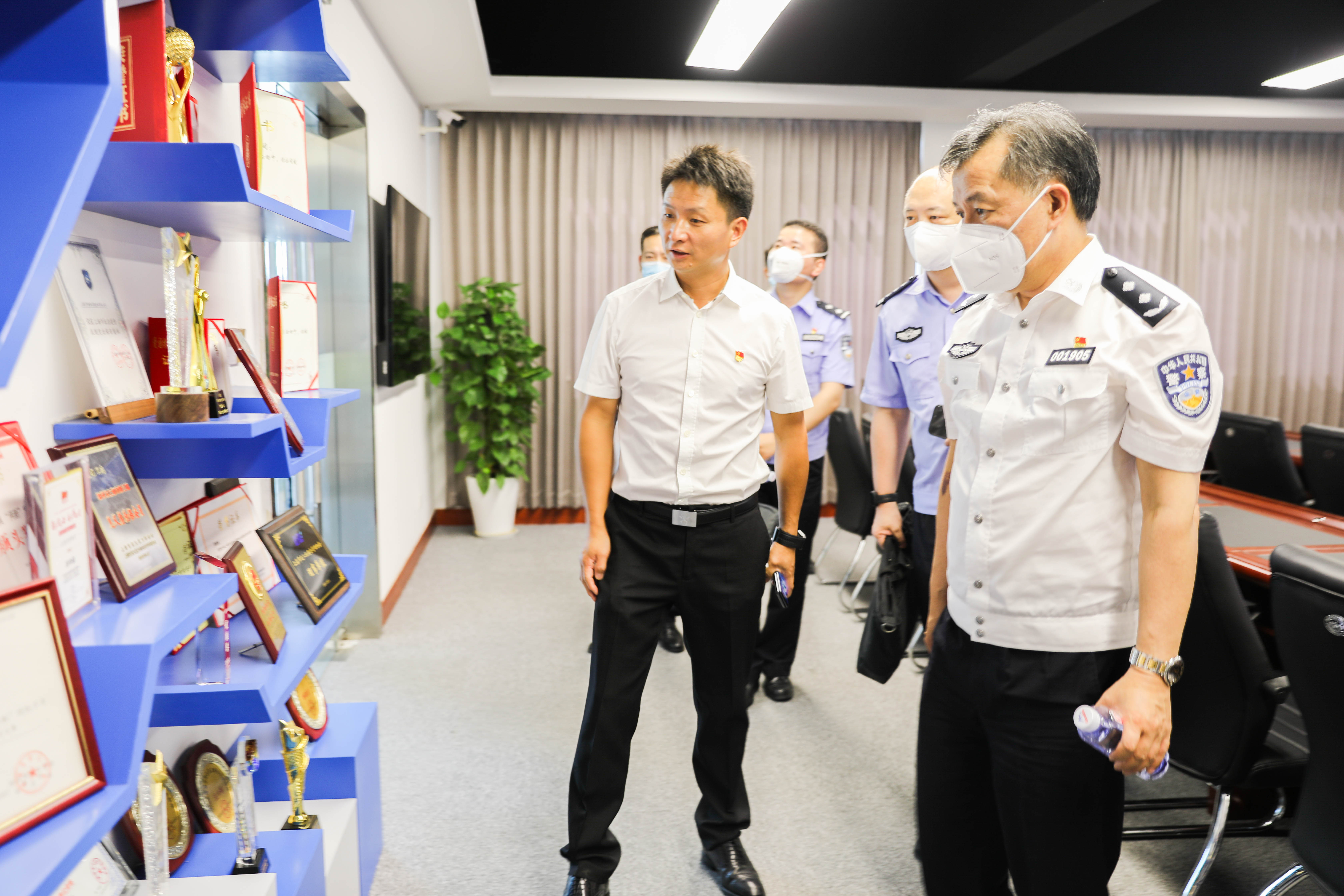 8月5日上午,上海市公安局治安總隊(duì)副總隊(duì)長(zhǎng)陳計(jì)明率保安管理處相關(guān)同志到宗保保安服務(wù)有限公司走訪調(diào)研。公司創(chuàng)始人馮中保、董事長(zhǎng)王耀和總經(jīng)理蔣德玉陪同。