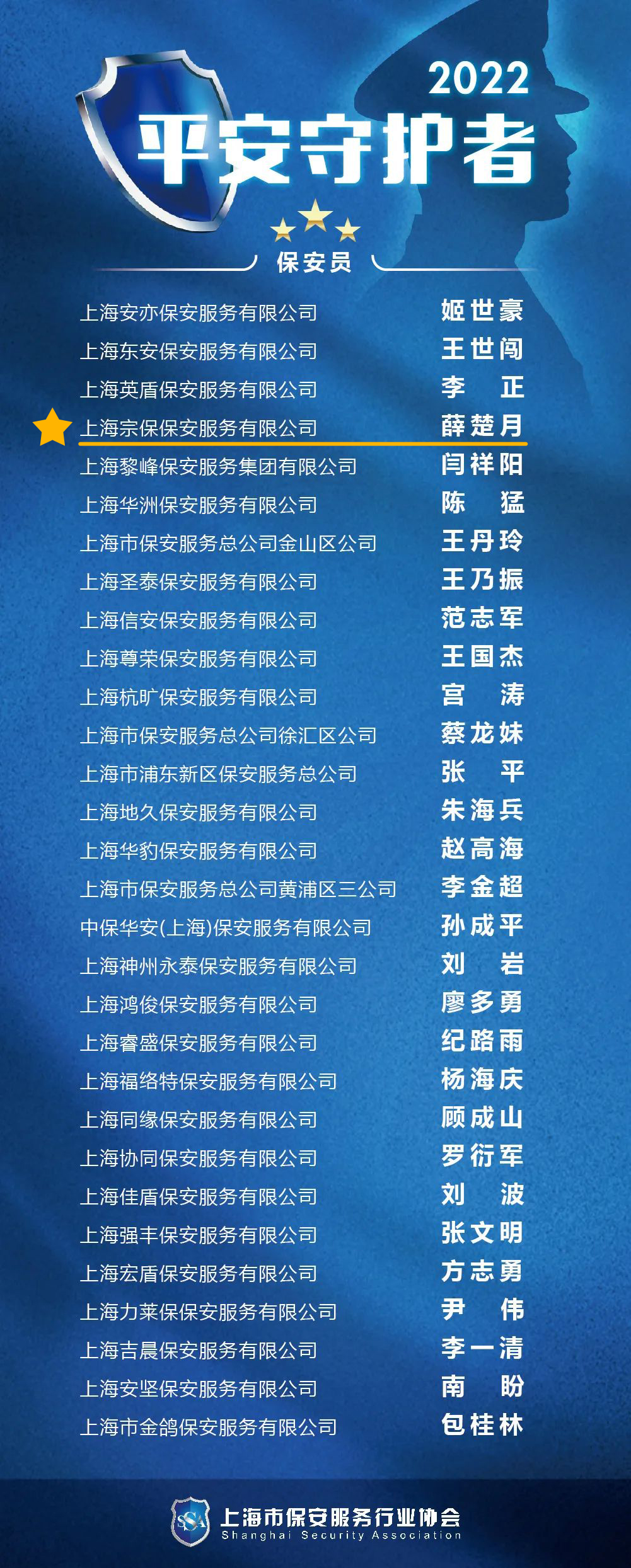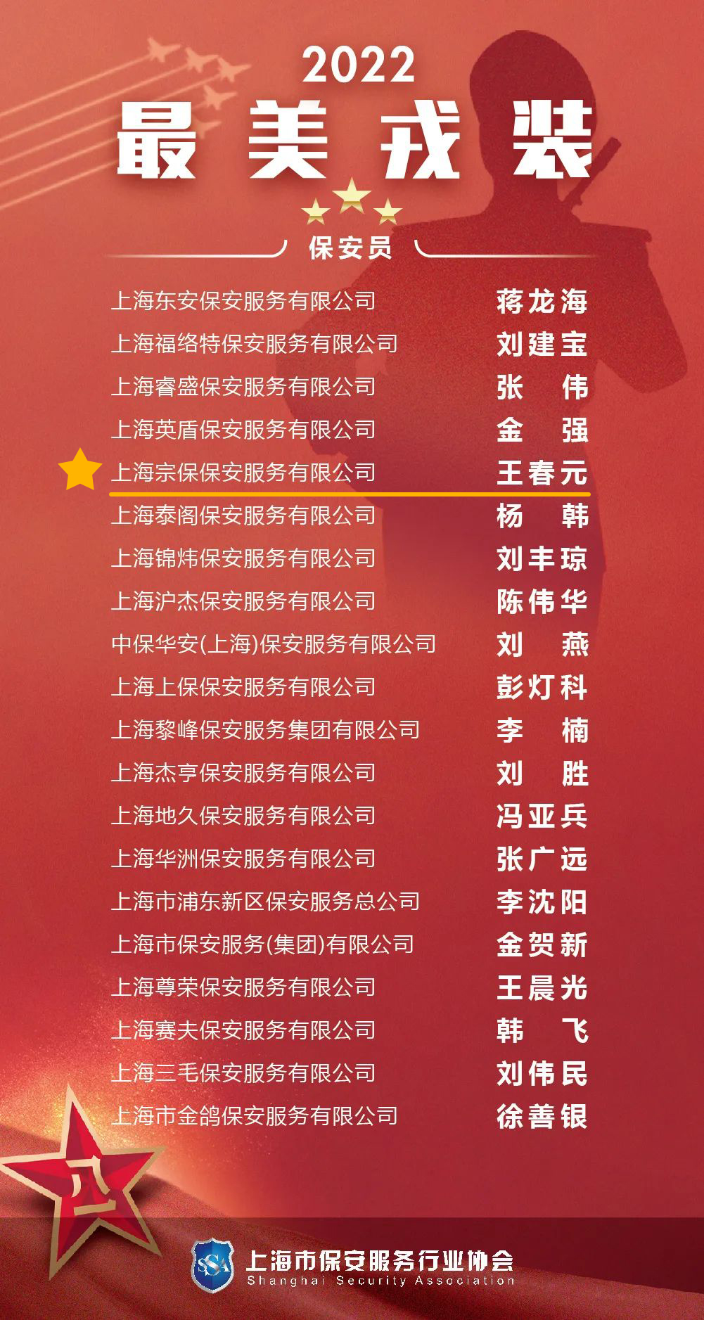 近日,上海市保安服務(wù)行業(yè)協(xié)會(huì)公布了“平安守護(hù)者”“最美戎裝”評(píng)選結(jié)果,上海宗保保安服務(wù)有限公司和公司的2位員工分獲殊榮。