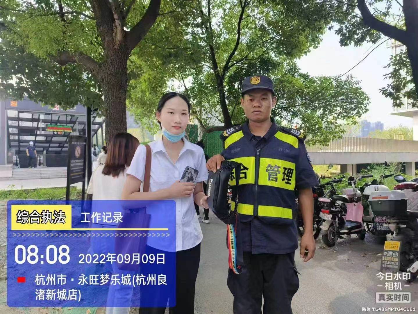 9月12日,浙江民泰駐臨平區(qū)塘棲市容項(xiàng)目隊(duì)員幫助走散小女孩找到家人。