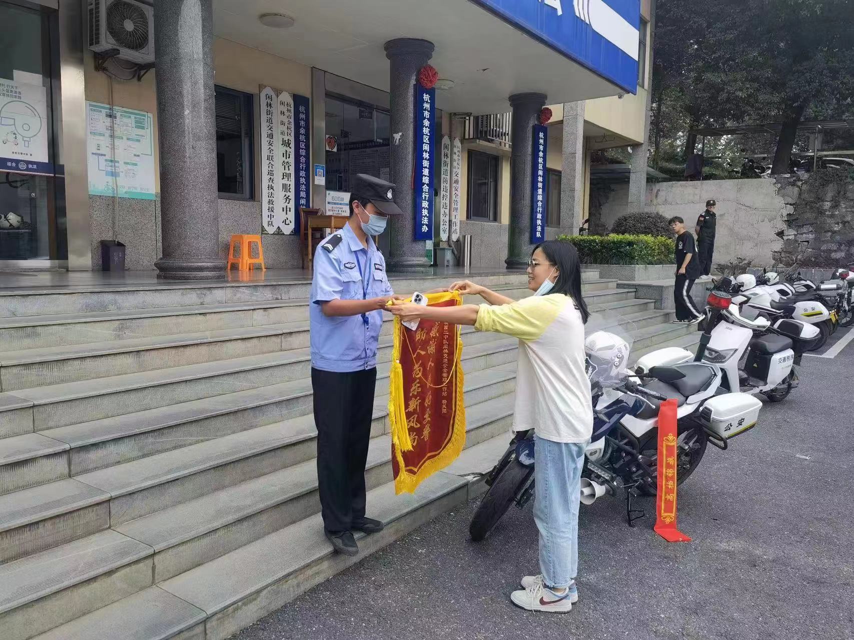 9月13日,浙江民泰公司駐杭州市余杭區(qū)閑林市容項目員工楊笑陽收到市民姚女士送來的一面繡有“感謝人民好交警 助人為樂新風(fēng)尚”的錦旗,感謝他冒雨守護小學(xué)生的行為。