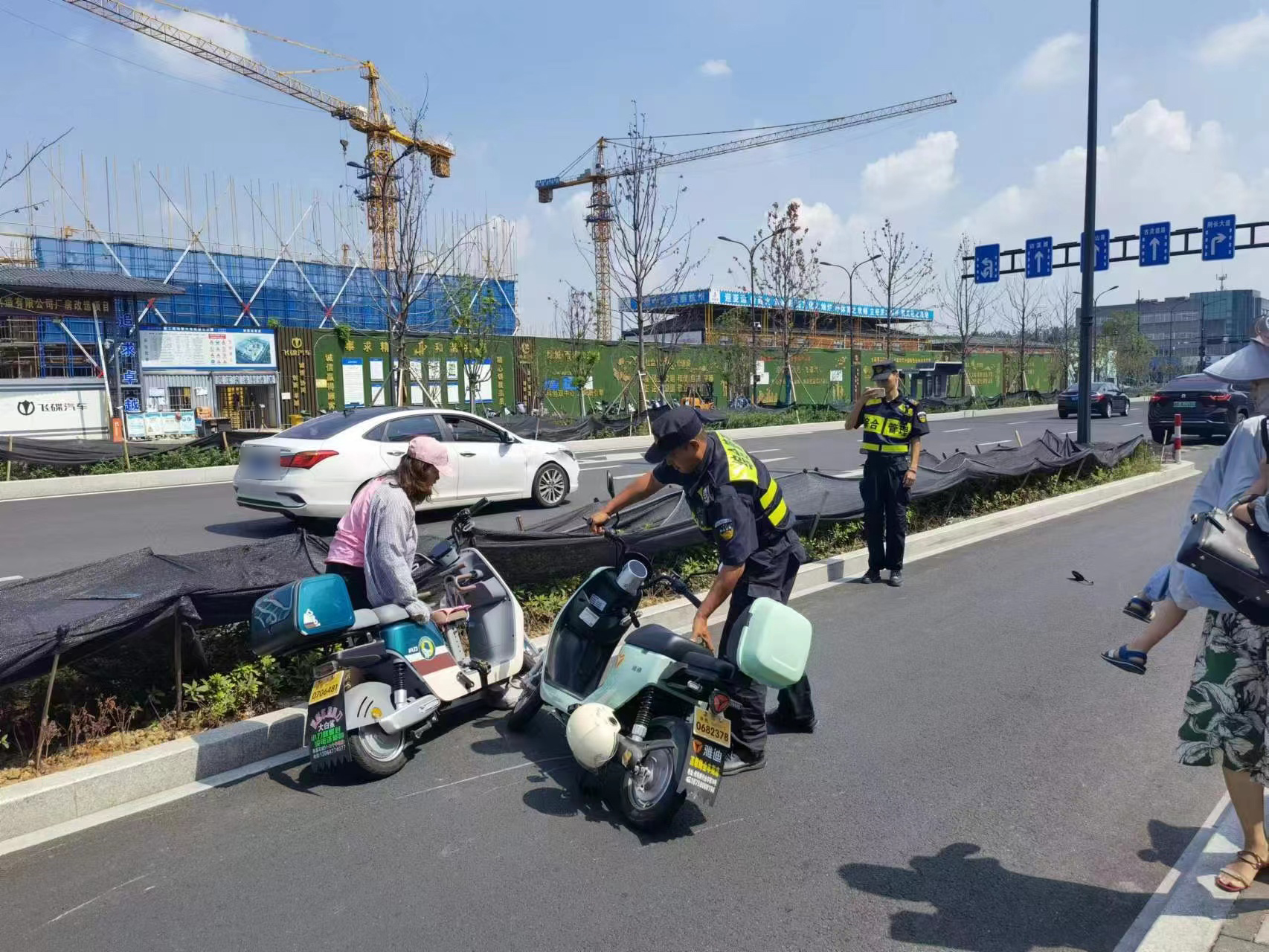 見此情形,三名員工趕緊上前察看,騎車的三人均有不同程度的擦傷,但雙方均表示沒有大礙。因事發(fā)地在非機動車道上,為避免發(fā)生二次事故,拍照取證后,三人又幫忙將電瓶車推到不妨礙交通的地方停放。