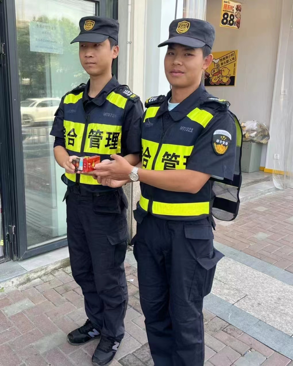 當天20:10,張彬洋在昆侖華府小區(qū)附近巡邏時,撿到一部紅米手機。因手機設(shè)有鎖屏密碼,一時無法聯(lián)系失主,便將情況上報項目負責人,并按指示在原地等待。
