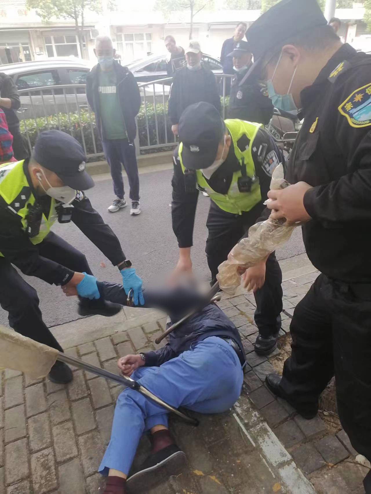情況十分危急,朱亞林見狀立即大聲喝止,并趕緊沖上去協(xié)助兩名保安員與持刀男子展開搏斗。隨即,聽到呼喊聲的其他保安員,拿著鋼叉盾牌等護具前來助陣,持刀男子見勢不妙,開始往環(huán)慶東路方向逃跑。