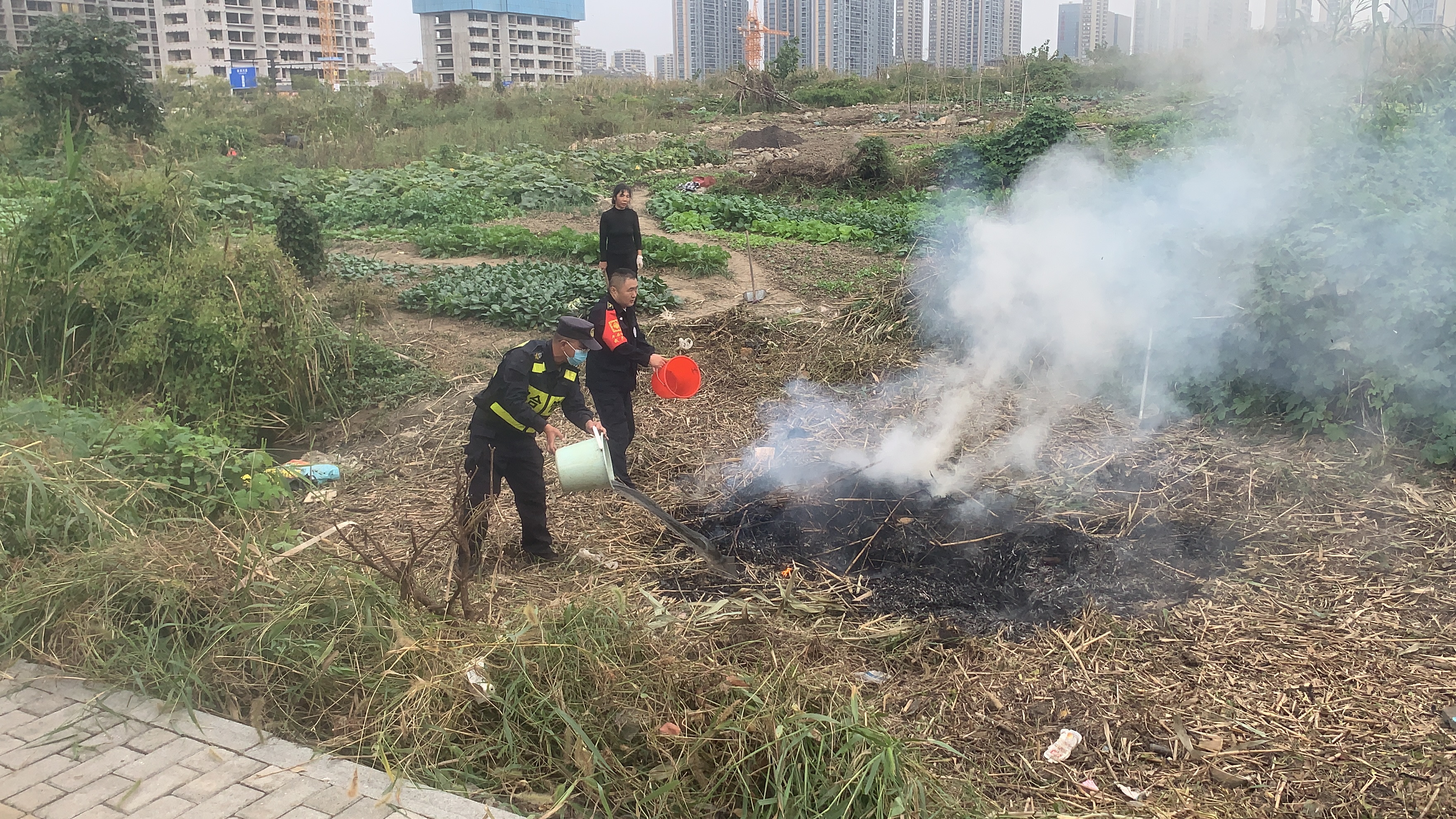 包志丹隨即找來水桶從水坑取水滅火,附近的同事也趕到現(xiàn)場幫忙。為防止死灰復(fù)燃,包志丹一直守在現(xiàn)場,直至焚燒的秸稈堆中余火盡滅,隨后回到工作崗位繼續(xù)值勤。