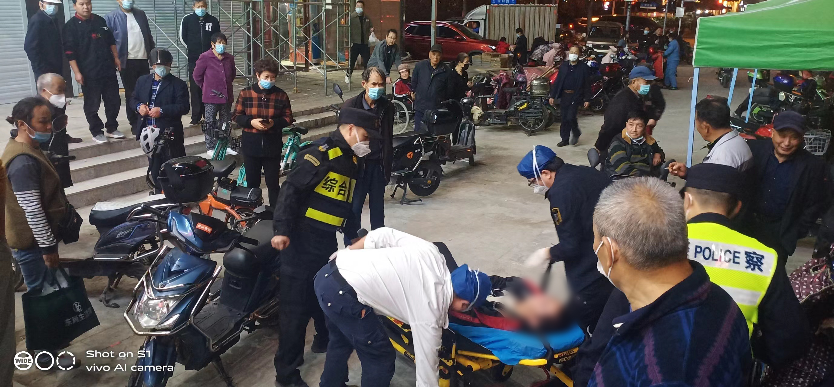 當(dāng)日17:00,宗保員工王剛和劉躍春巡查至金山區(qū)龍皓路綠地東尚超市門口時,看到一個男子躺在地上,便趕緊上前察看。